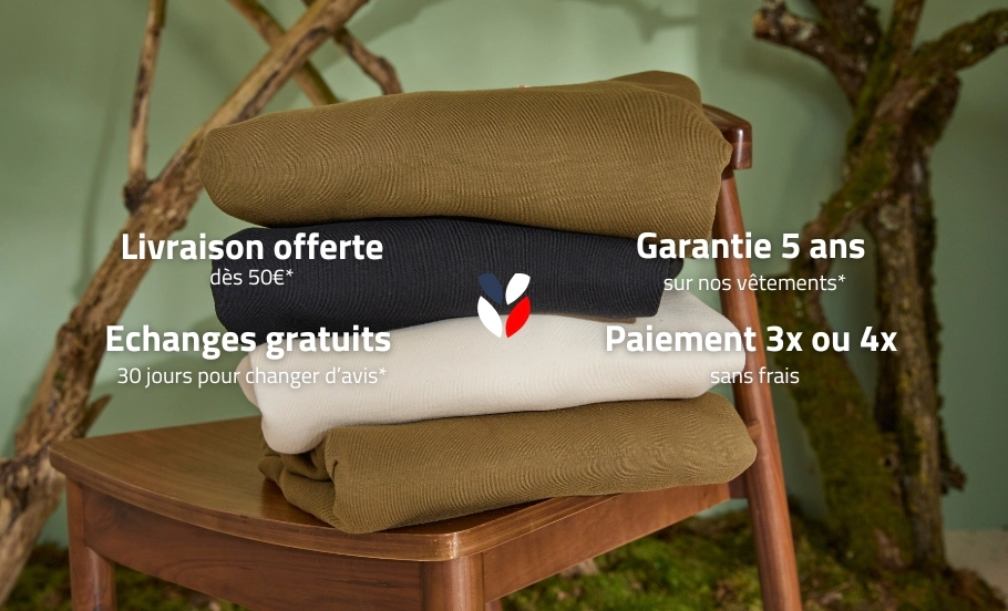Derrière nos prix, vous trouverez celui de nos matières sélectionnées avec soin (comme le coton biologique ou encore le lin), du savoir-faire et du temps dédiés à chaque pièce afin de vous proposer un vêtement qui durera le plus longtemps possible au fur et à mesure des années. Nos vêtements sont tous le résultat d’un contrôle qualité soigné et d’une expertise développée depuis plus de 75 ans. Nos nombreux labels vous garantissent d’ailleurs notre transparence et la traçabilité de toute notre chaîne de production