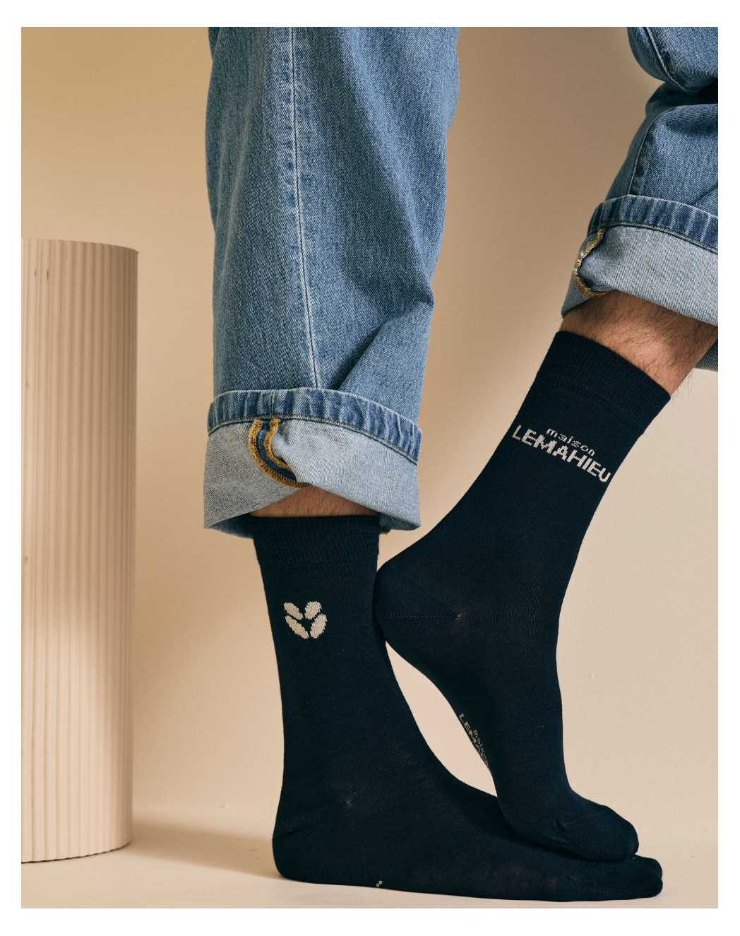 Chaussettes unisexe - mi- hautes - Marine / Ecru