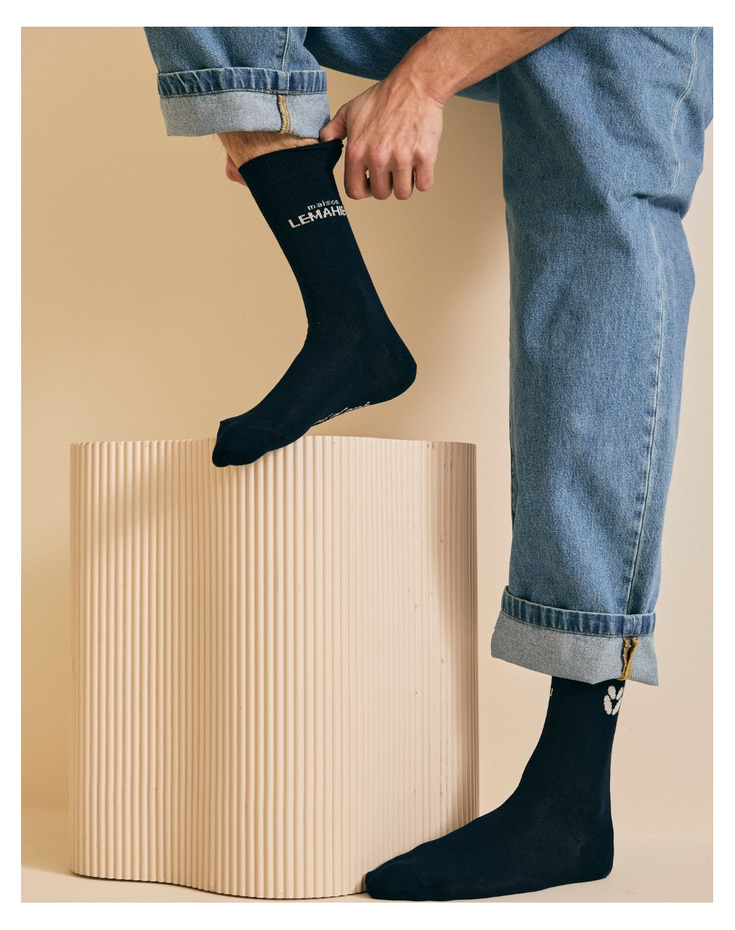 Quand Maison Lemahieu rencontre Les Trois Tricoteurs, cela donne naissance à une chaussette qui transcende l’essentiel. Un clin d'œil au sportswear rétro, revisité avec tout le savoir-faire de nos ateliers. Son dessous de pied en bouclettes de coton enveloppe chaque pas d’un moelleux réconfortant, tandis que ses côtes montantes structurent la silhouette avec élégance. Pensée pour durer, sa pointe et son talon renforcés assurent une résistance impeccable au fil du temps. Mais c’est dans les détails que tout se joue : une griffe signature discrète, des contrastes subtils, un équilibre parfait entre confort et style. Tricotée en France, avec passion et exigence, cette chaussette ne se contente pas d’habiller vos pieds, elle affirme votre style.