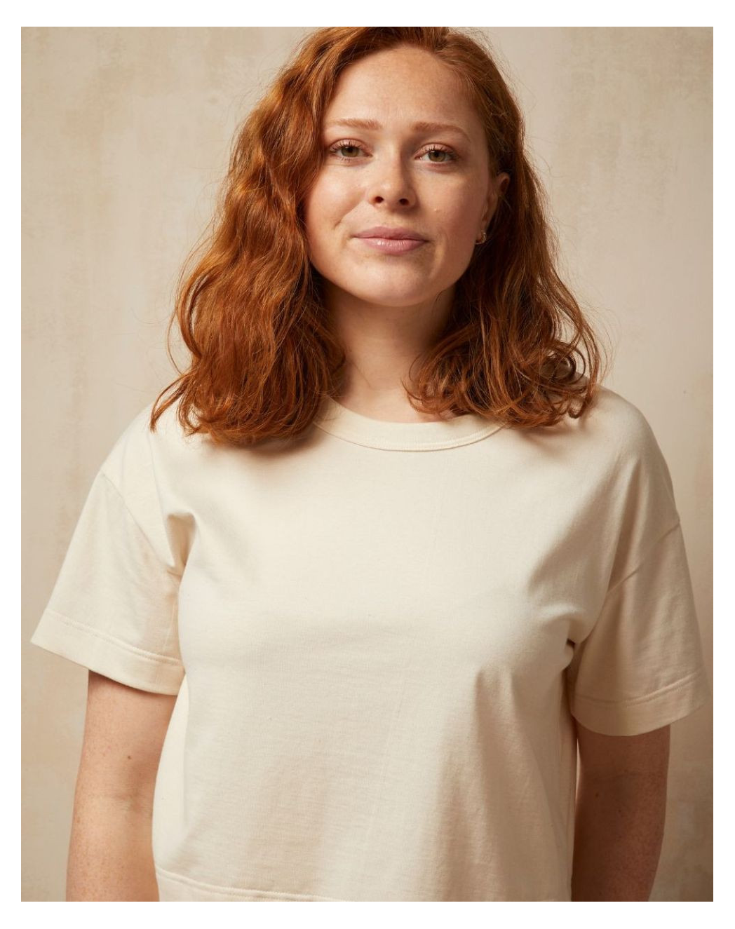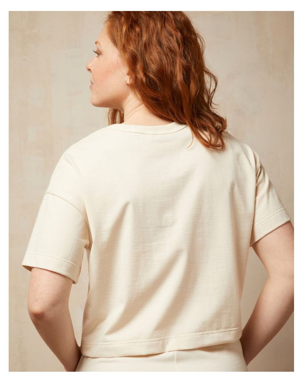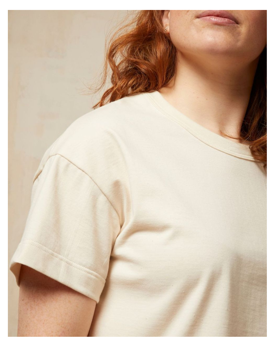 Tricoté en France dans un jersey de coton biologique de 180g/m², Yina allie légèreté et tenue. Ses manches raglants offrent une liberté de mouvement exceptionnelle tout en dessinant une ligne d'épaule structurée et élégante. La maille jersey, travaillée avec précision, garantit une résistance au fil des lavages sans sacrifier la douceur qui caresse la peau. Sa teinte apporte une chaleur subtile qui met en valeur toutes les carnations, idéale pour composer des ensembles aux accents bohèmes raffinés.