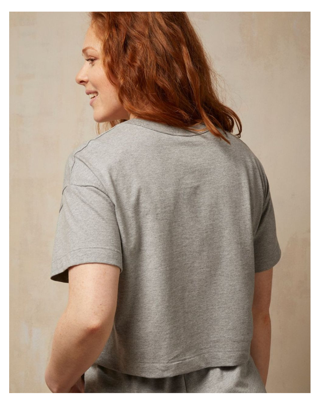 Tricoté en France dans un jersey de coton biologique de 180g/m², Yina allie légèreté et tenue. Ses manches raglants offrent une liberté de mouvement exceptionnelle tout en dessinant une ligne d'épaule structurée et élégante. La maille jersey, travaillée avec précision, garantit une résistance au fil des lavages sans sacrifier la douceur qui caresse la peau. Sa teinte grise offre une versatilité maximale pour créer de nombreuses combinaisons vestimentaires.