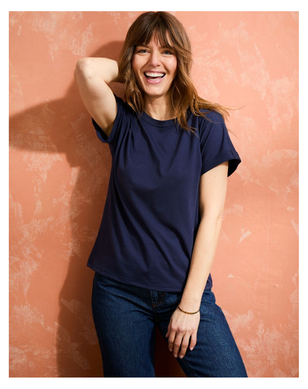 Une pièce essentielle pensée dans les moindres détails, entre confort et allure. Ce t-shirt en jersey léger (160 g/m²) marie 47 % de coton pour une douceur naturelle, 47 % de modal pour une fluidité, et 6 % d’élasthanne pour une extensibilité discrète qui accompagne chaque mouvement. Sa coupe boxy, volontairement ample, dessine une silhouette décontractée, mais affirmée. Les manches à revers et le col rond rapporté, ajusté proche du cou, sont des clins d’œil à un style intemporel et structuré. Une pièce polyvalente, pensée pour transcender le quotidien et s’associer à toutes vos envies de looks, du chic au décontracté. Parce que la simplicité peut aussi être synonyme de sophistication.