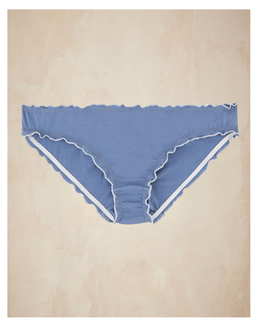 Les petits volants de cette culotte bio s'accordent parfaitement à l'esprit espiègle et champêtre de ce modèle froufrou. La culotte coton bio coloris bleu océan idéal pour se sentir bien sous son jean, pour flâner le dimanche au petit déjeuner ou pour dormir ! Cette culotte s'ajoute dans votre collection de basique en coton, elle s'adapte à chaque femme en fonction de ses envies : de jour comme de nuit, cette pièce de lingerie est l'alliance du confort et de la légèreté avec une touche de modernité appréciable qui lui confère un style féminin grâce au froufrou.