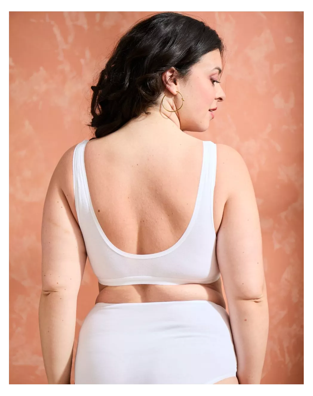 L'ensemble Jade en blanc s’impose comme le sous-vêtement caméléon, celui qui se glisse sous toutes les tenues et accompagne toutes les journées. Sa brassière à pinces galbe naturellement la poitrine sans jamais la comprimer, tandis que la culotte taille haute dessine une silhouette féminine, tout en confort. Le blanc, dans toute sa simplicité, sublime les courbes sans jamais les contraindre. Discret sous les vêtements, doux sur la peau, cet ensemble incarne ce que la lingerie a de plus pur : un parfait équilibre entre élégance et bien-être.