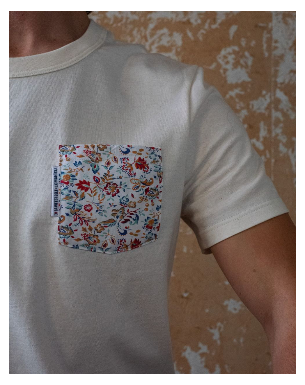La vie est Belt réhausse notre t-shirt en jersey de coton exclusif Puure 01 fabriqué à partir de chutes de coton bio de nos ateliers, d'une poche issue de linge de maison. Un t-shirt à poche à l'imprimé fleuri d'une douceur irrésistible et une histoire sans fin qui (nous) fait du bien. Cette collaboration riche en sens conforte l'infime possibilité de choses à faire avec des déchets pourtant destiné à être jeté. Saviez-vous que près de 600 000 tonnes de textile sont collectées chaque année par Le Relais ? Parmi eux, du linge de maison en quantité astronomique que nous avons revalorisé sur la poche de notre t-shirt. Une démarche anti-gaspi, pour une consommation responsable et un parti-pris original !