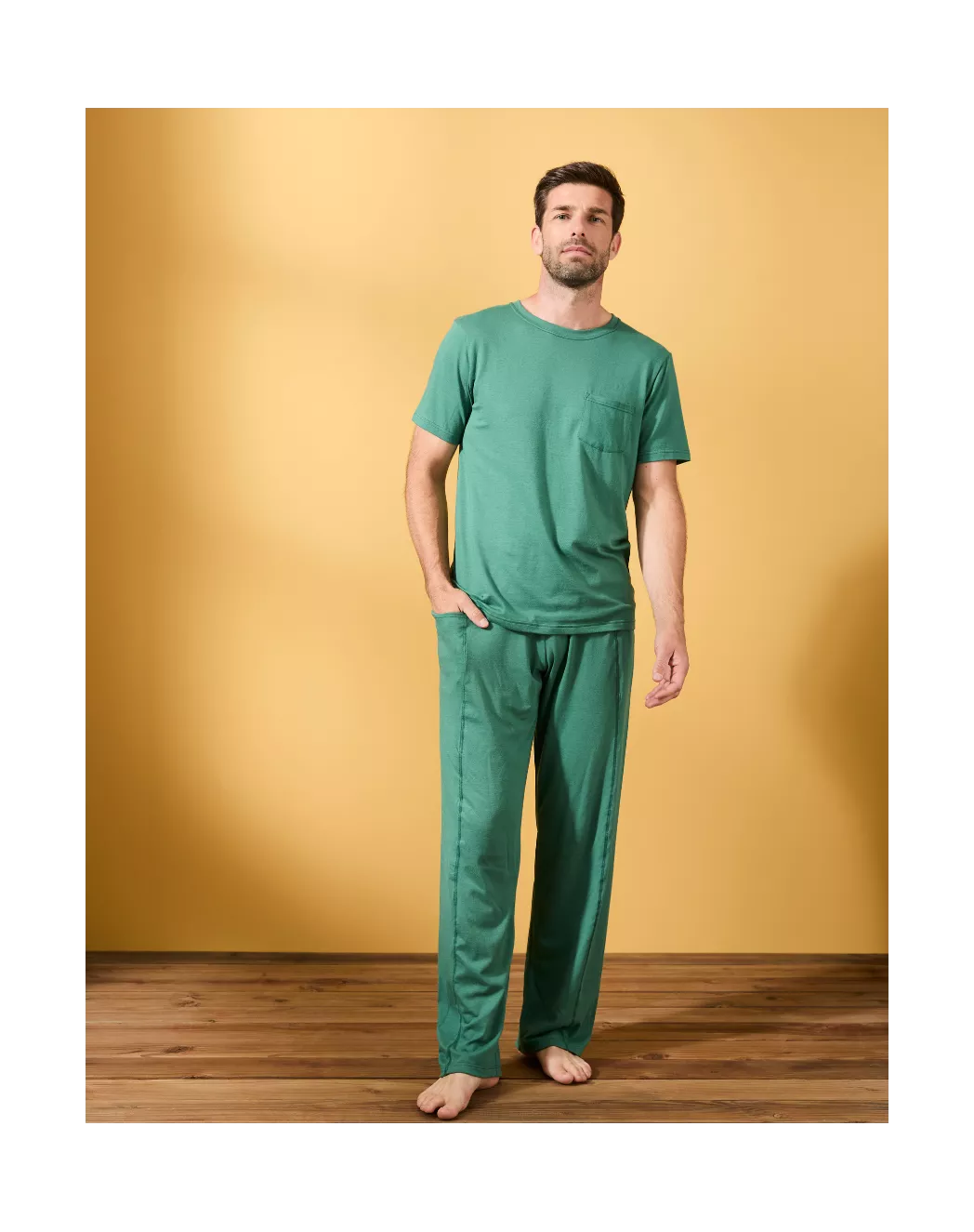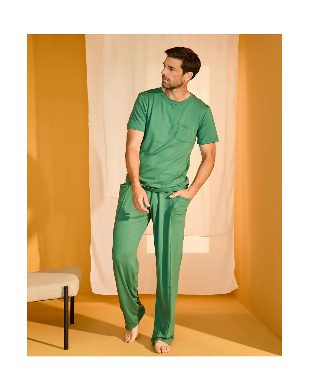 Hector n’est pas un simple pantalon, c'est cette pièce que l’on enfile et que l’on oublie aussitôt, tant elle sait se faire douce et souple. Son secret ? Un coton modal d’une finesse exceptionnelle, à la surface légèrement soyeuse, qui glisse sur la peau et accompagne chaque mouvement avec fluidité. Sa coupe droite, équilibrée, s’achève sur une ceinture élastiquée qui assure maintien et liberté. Les poches discrètes, placées juste où il faut, ajoutent une touche fonctionnelle sans rompre l’harmonie de la silhouette. À la maison, il incarne l’art du cocooning élégant. En ville, il joue les basiques raffinés, faciles à associer. Hector, c’est le pantalon qui sait tout faire,