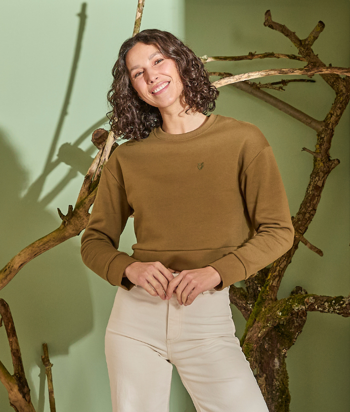 Le top en coton épais. Une silhouette travaillée, pensée pour offrir du style. Tricoté en interlock de coton bio épais, au poids idéal de 230 g/m². Avec ce poids-là, le tricot résiste mieux au temps et aux lavages, un choix qui dure vraiment.