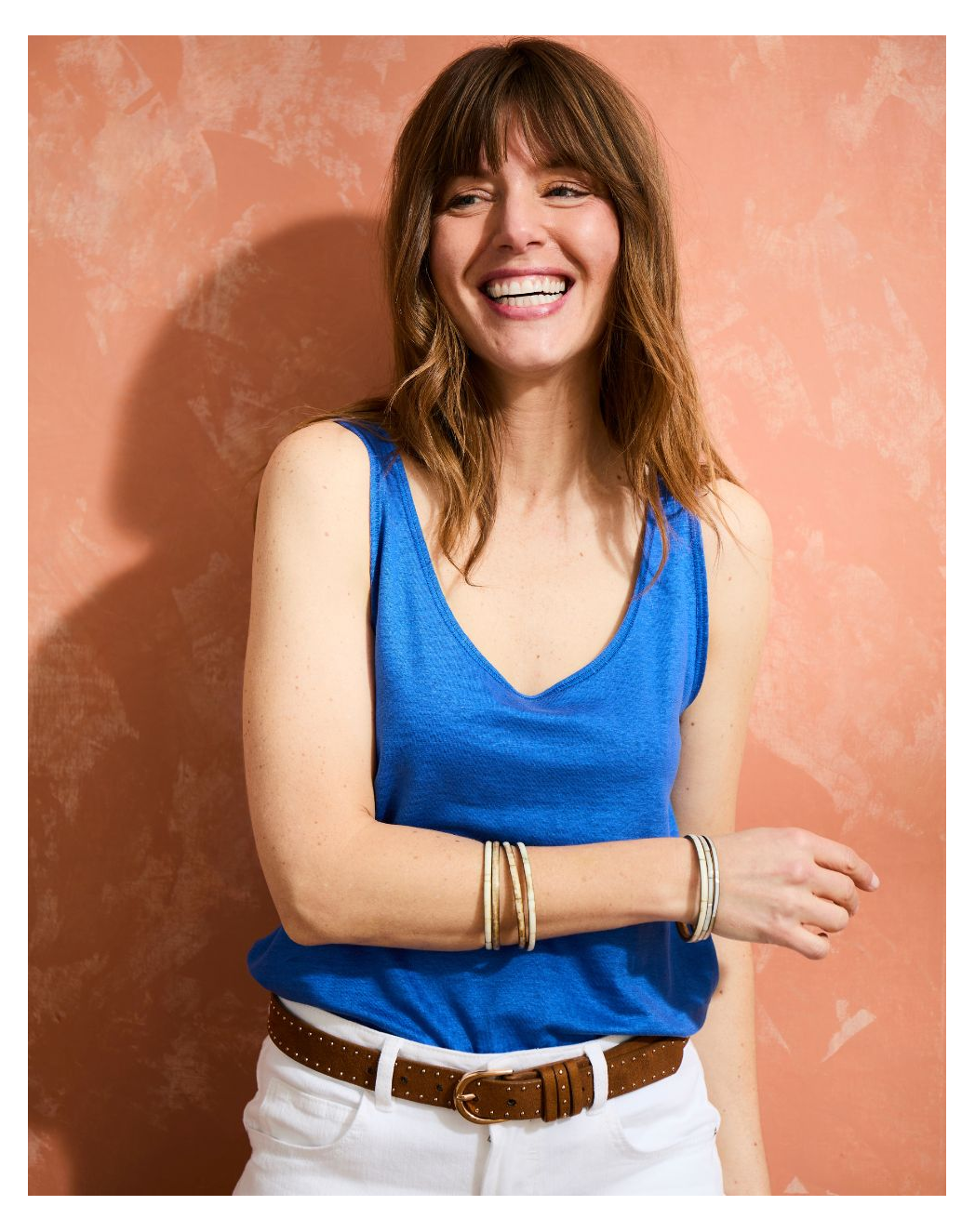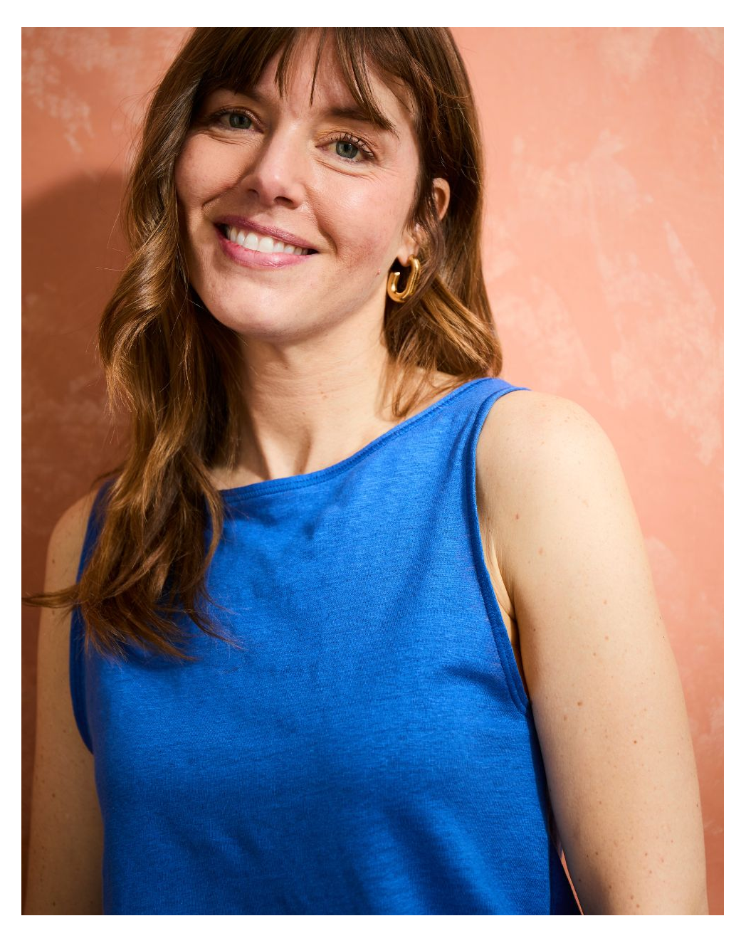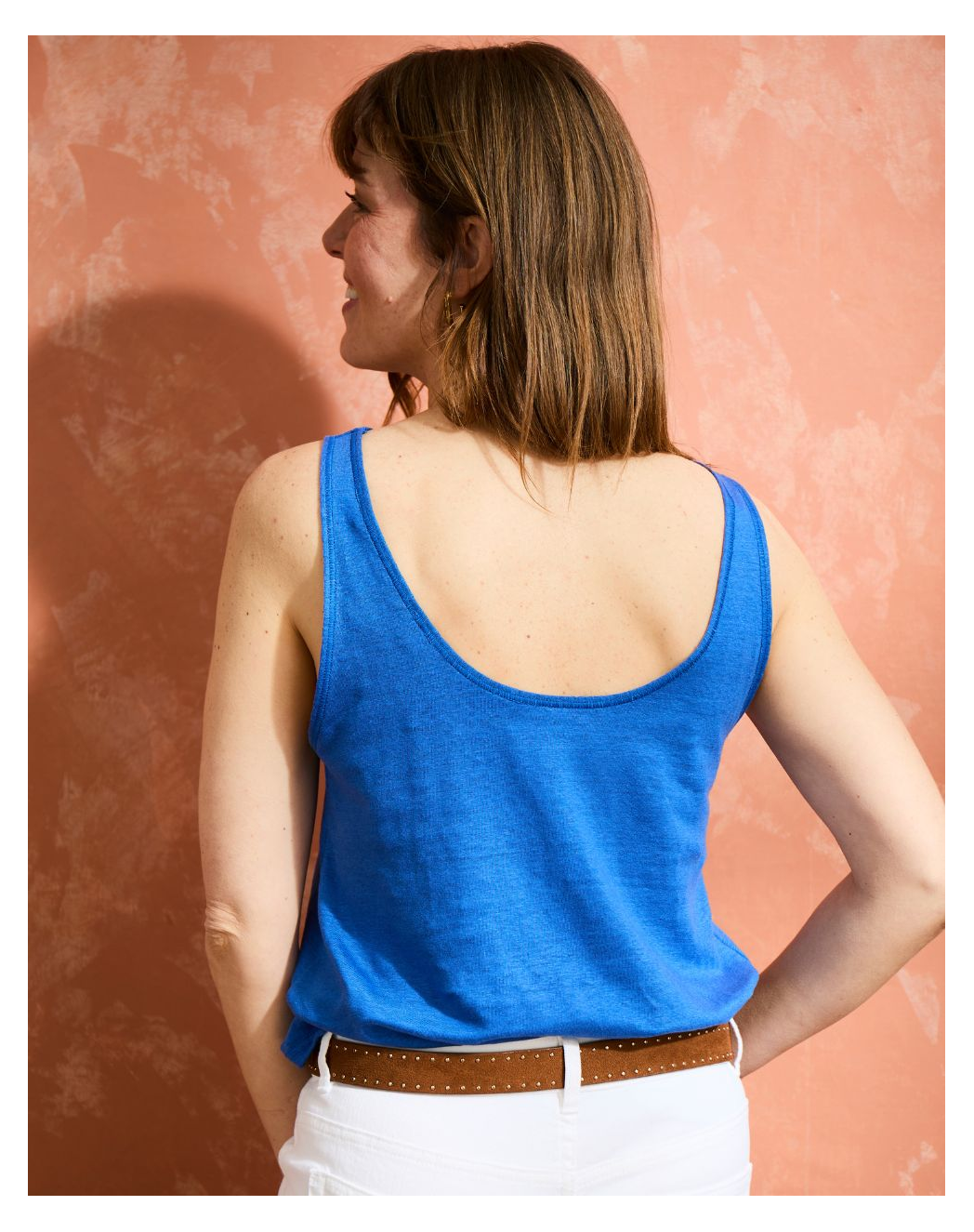 Débardeur recto-verso 100% Lin - Bleu électrique