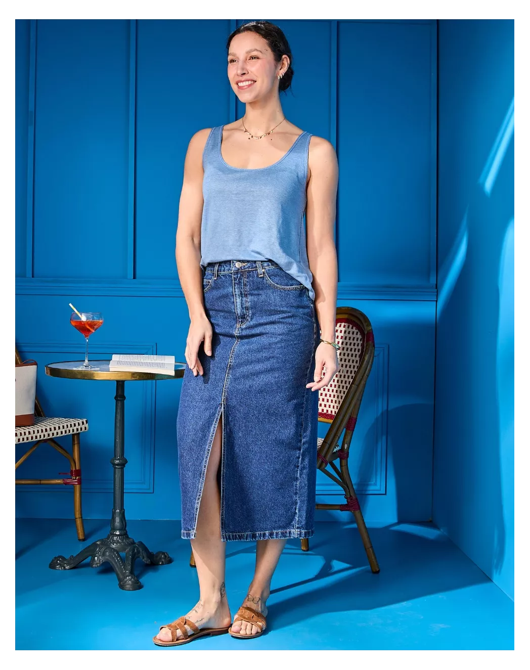 Tricoté dans un lin 230 grammes au toucher vivant, Alina laisse respirer le corps tout en offrant ce tombé franc qu’on aime tant. Son design réversible, à porter devant ou dos selon l’humeur, joue avec les lignes et révèle juste ce qu’il faut d’allure. La coupe, simple et juste, accompagne le mouvement avec naturel, ni trop sage, ni trop apprêtée. Un essentiel lumineux que l’on enfile sans réfléchir, et qui donne immédiatement le ton des beaux jours.