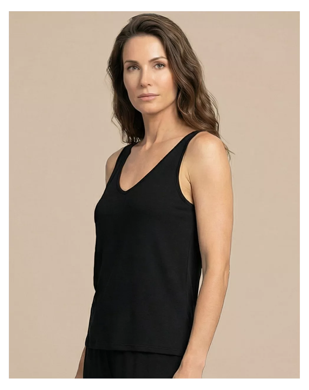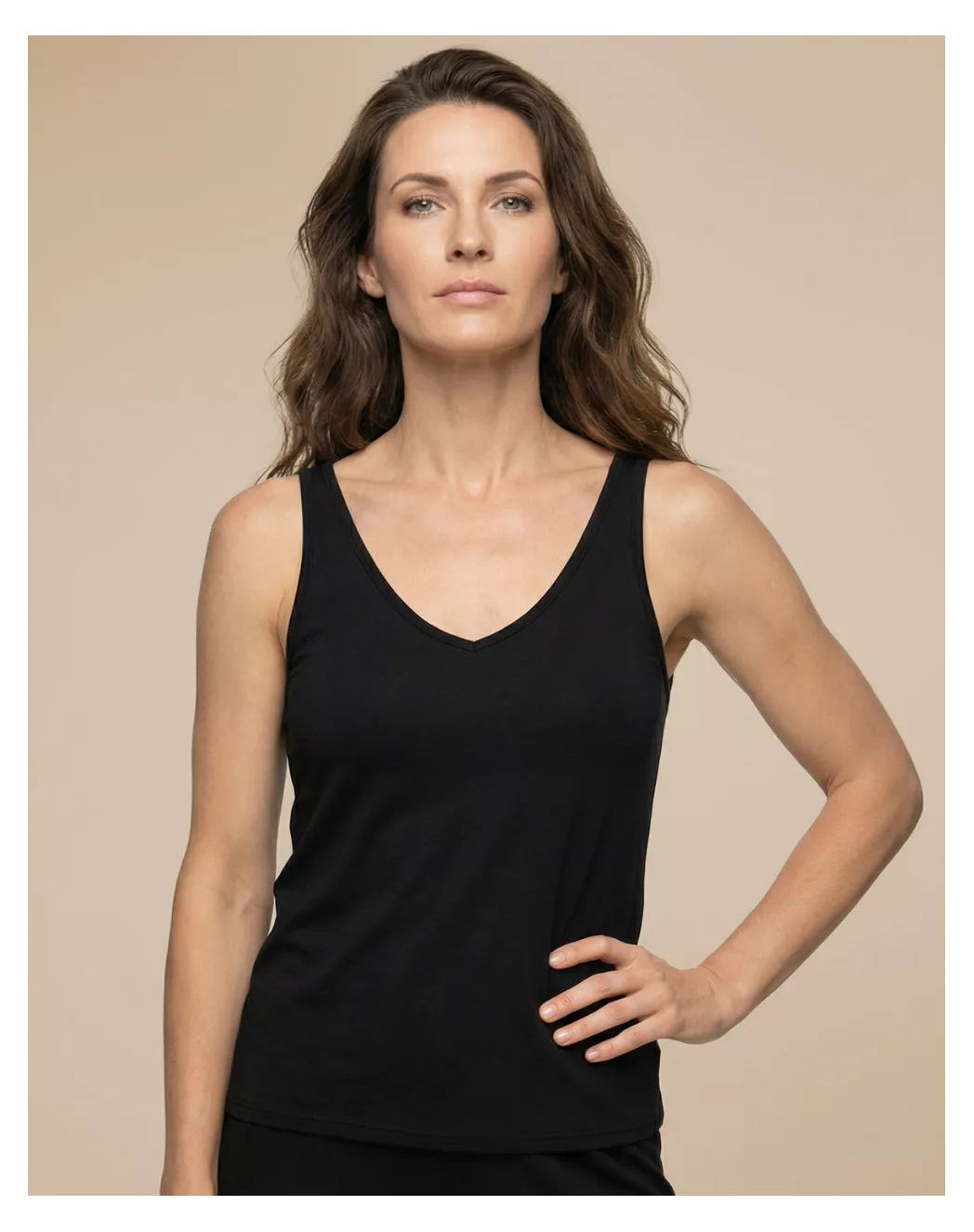 Nina s’installe naturellement sur le corps avec sa coupe décontractée et flatteuse. Le col en V plongeant et les bretelles parfaitement proportionnées sculptent la silhouette avec élégance, tandis que le coton modal doux et léger glisse sur la peau à chaque mouvement. Un débardeur versatile, moderne et confortable, qui accompagne tous vos gestes, du matin au soir.