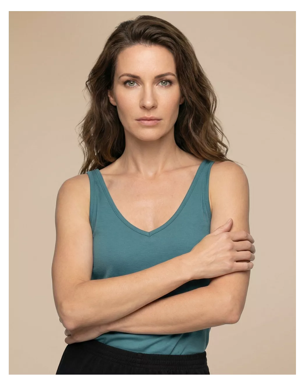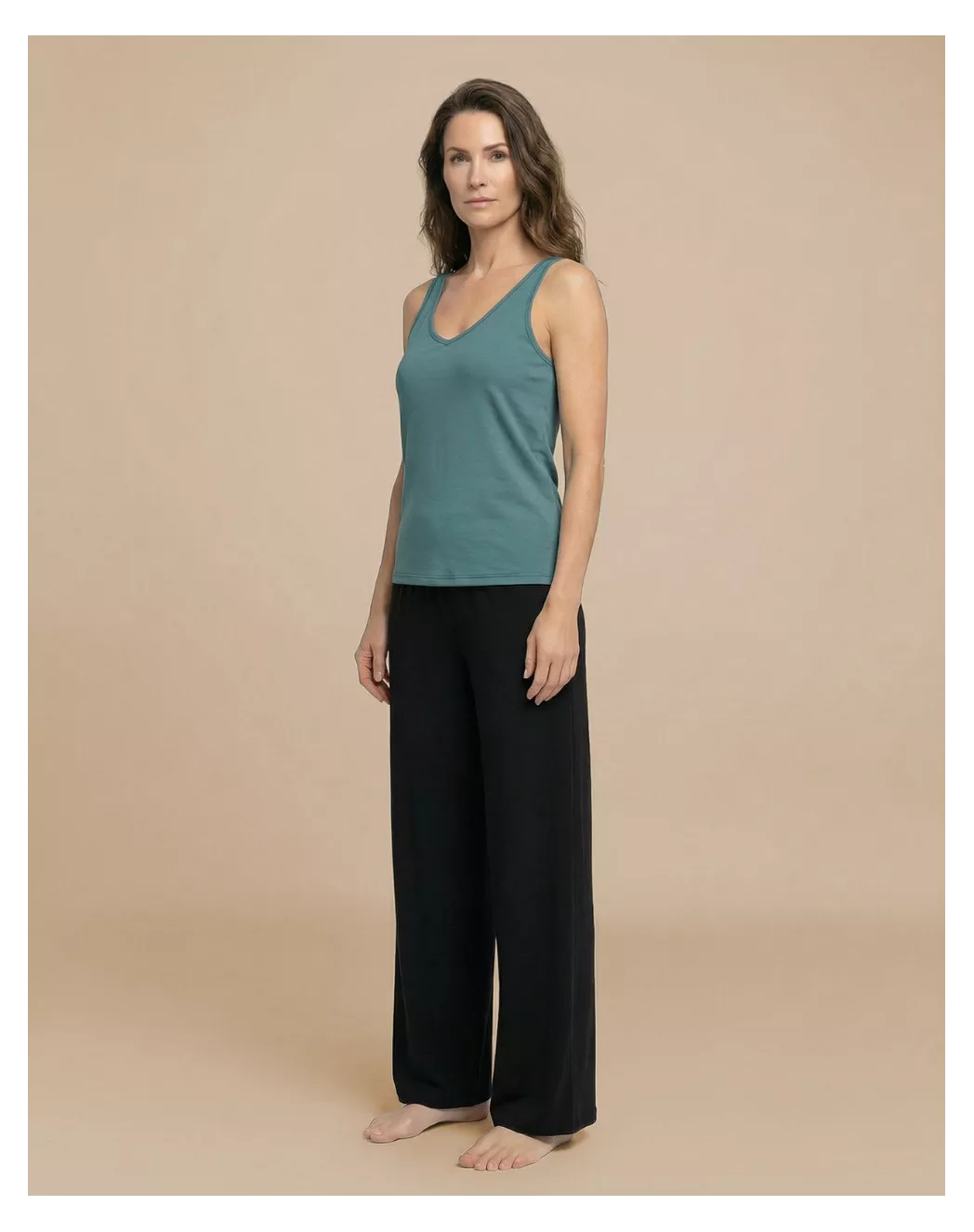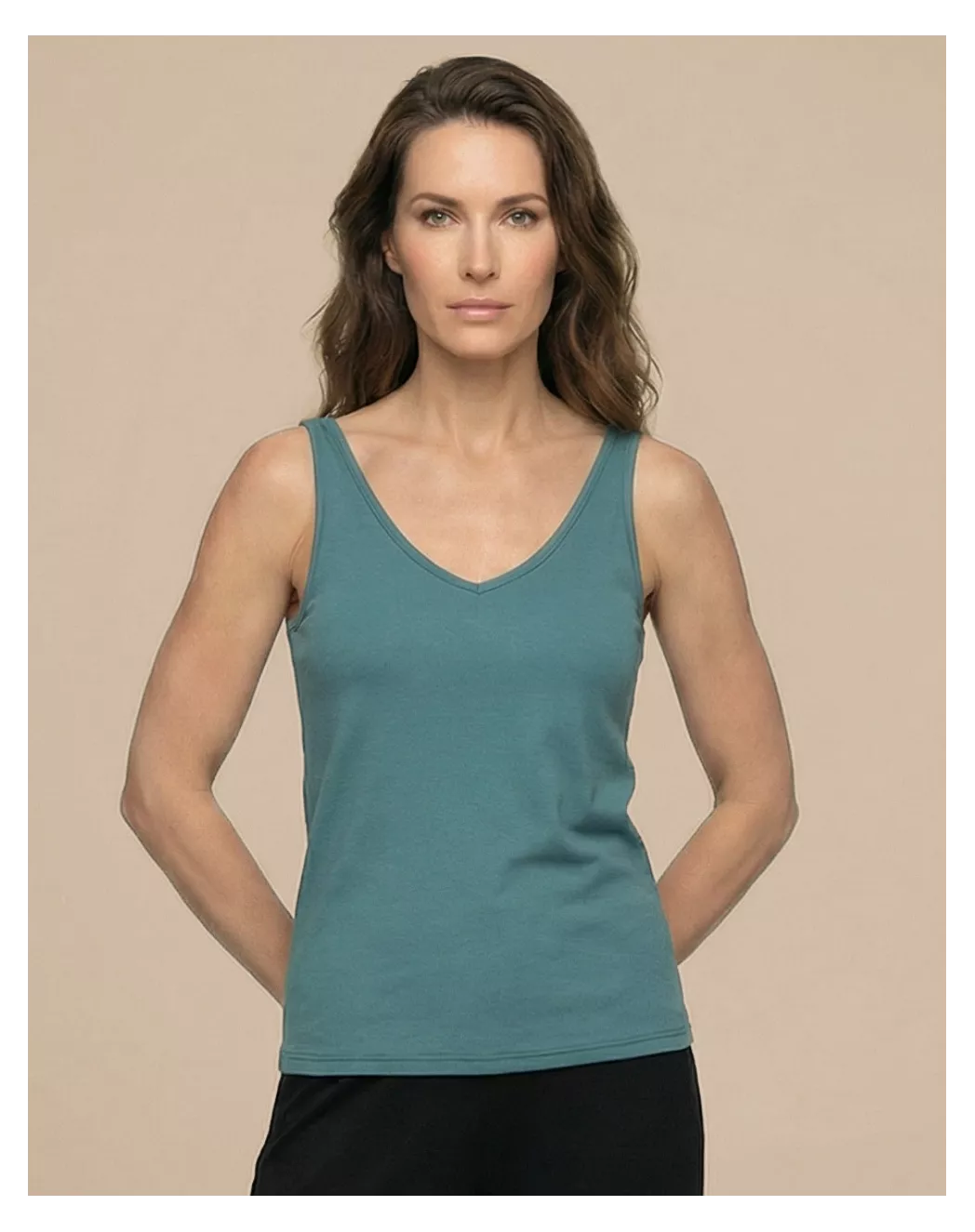 Nina s’installe naturellement sur le corps avec sa coupe décontractée et flatteuse. Le col en V plongeant et les bretelles parfaitement proportionnées sculptent la silhouette avec élégance, tandis que le coton modal doux et léger glisse sur la peau à chaque mouvement. Un débardeur versatile, moderne et confortable, qui accompagne tous vos gestes, du matin au soir.