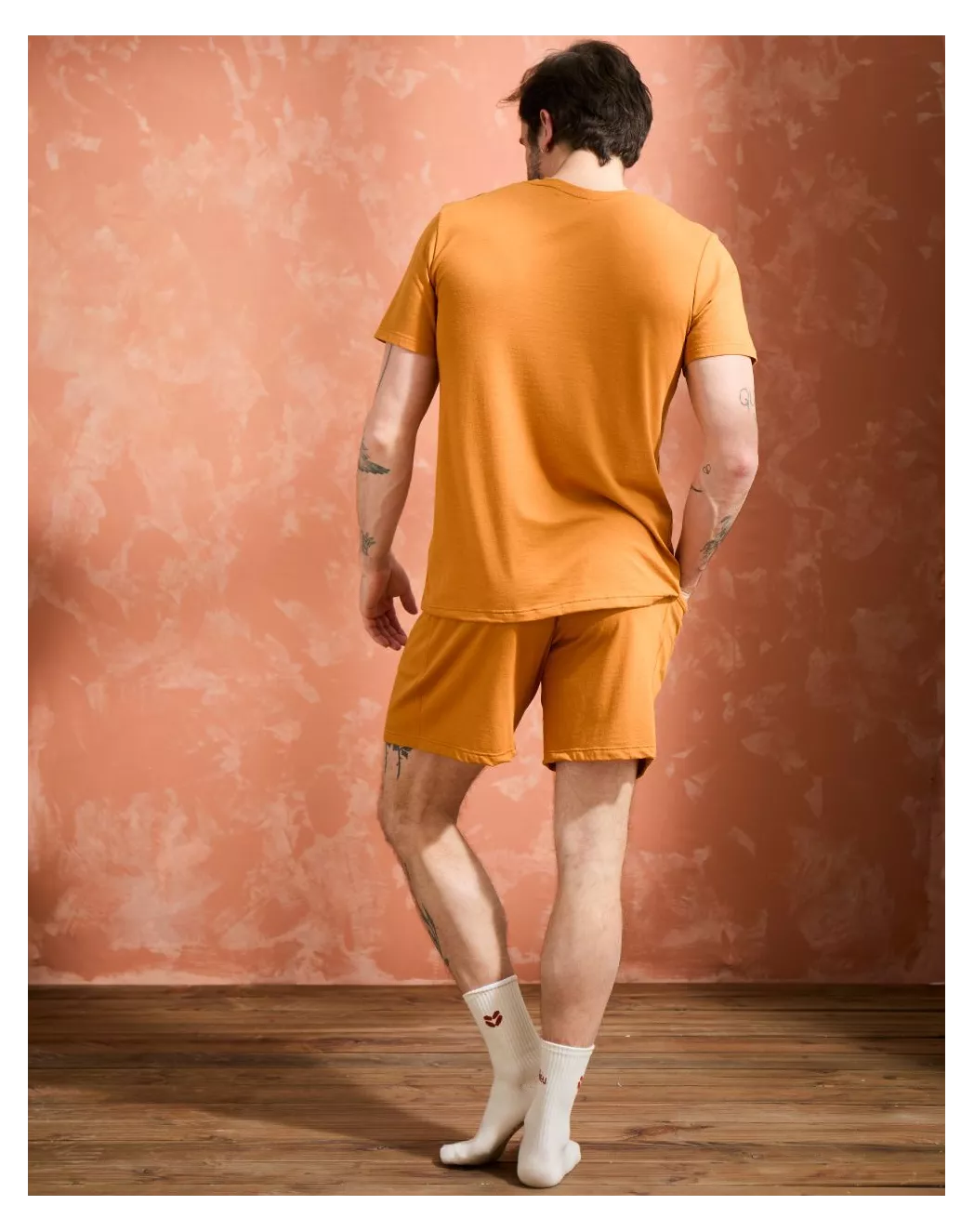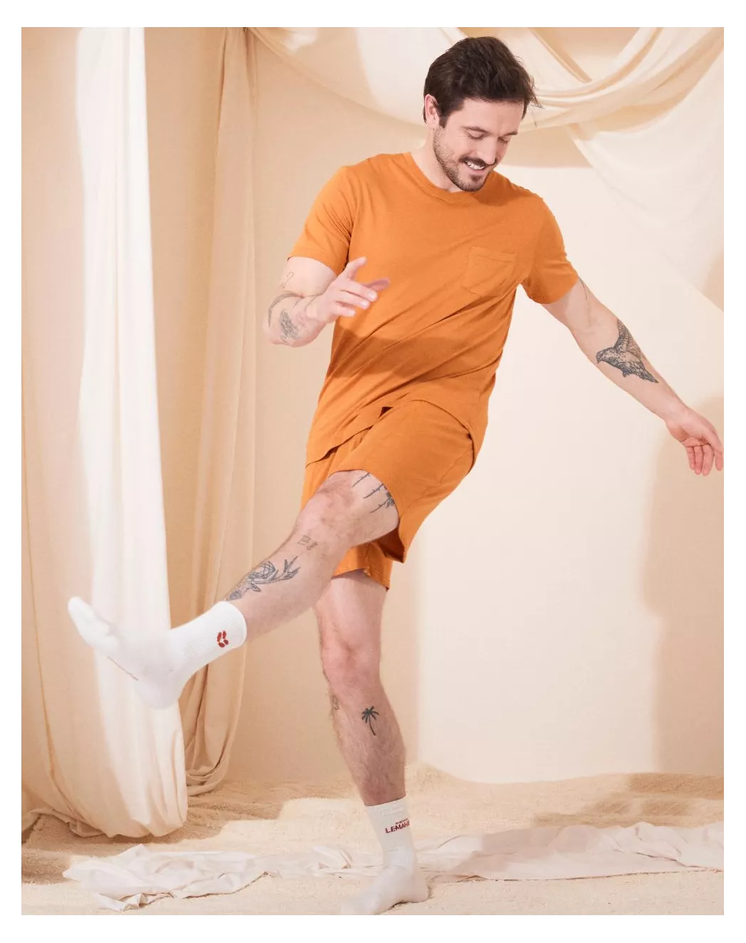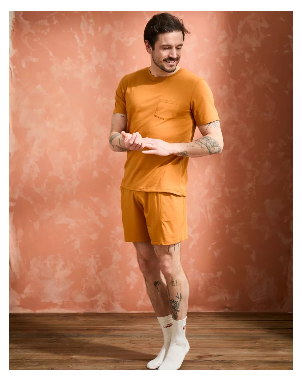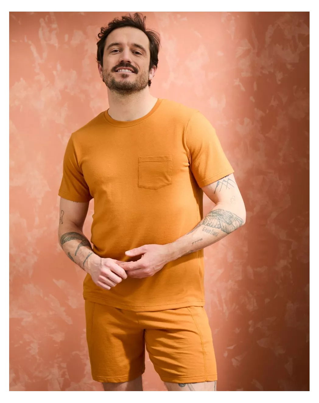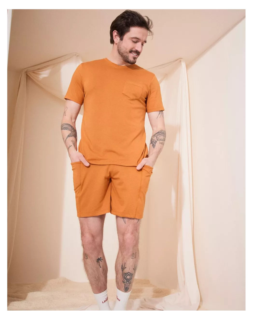 Pensé pour les moments de détente, l’ensemble Hectore réunit confort et allure décontractée. Son t-shirt col rond s’ajuste naturellement grâce à une maille en coton modal ultra-douce, légère et respirante. Le short, fluide et agréable au porté, se distingue par une ceinture contrastée noire et des poches discrètement intégrées. L’ensemble parfait pour chiller à la maison ou traverser les nuits avec style et douceur.