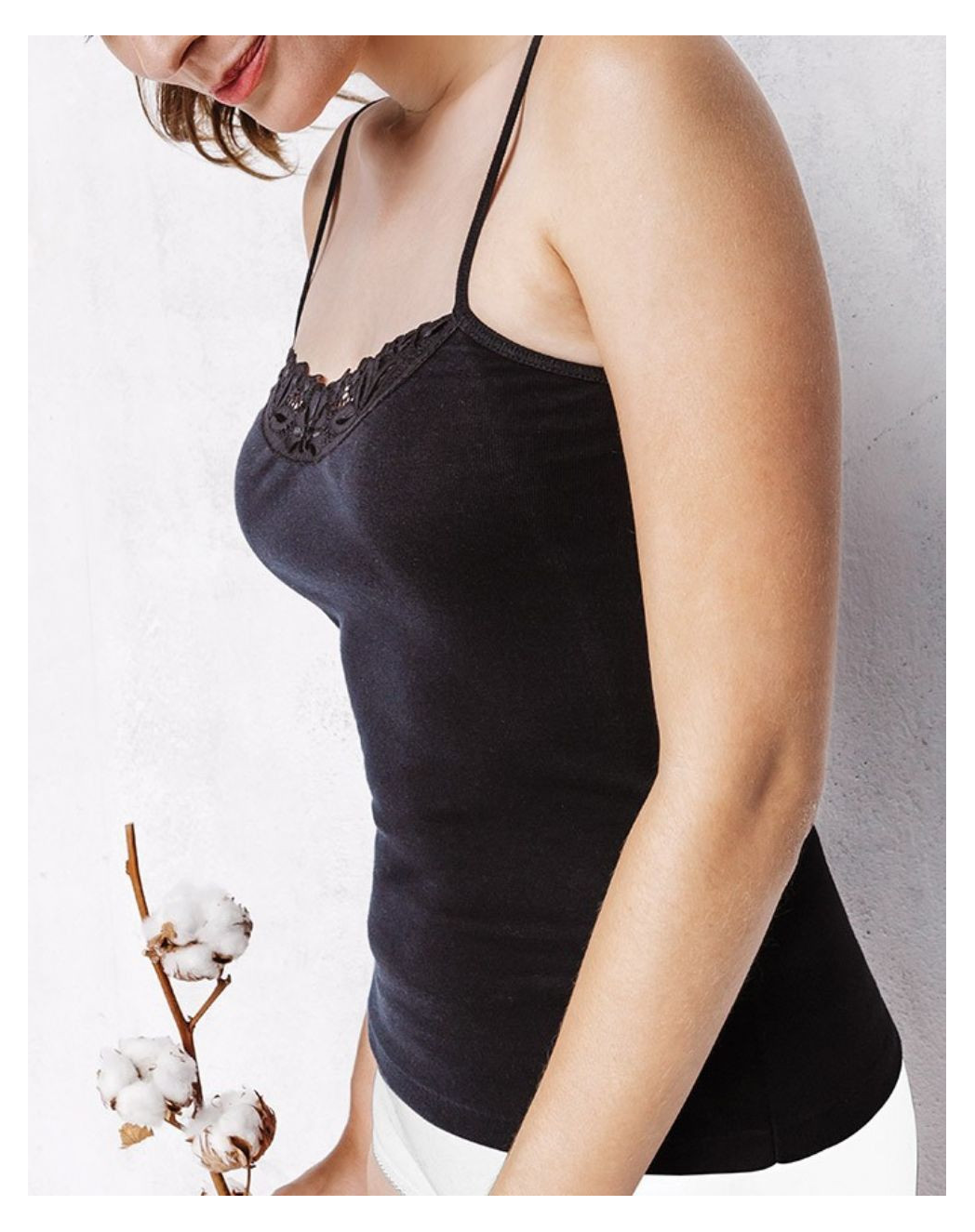 À la croisée de la lingerie et du prêt-à-porter, ce caraco apporte une touche de raffinement à votre vestiaire. Plus sophistiqué qu’un simple débardeur, il séduit par ses bretelles fines et son délicat empiècement en broderie anglaise qui sublime le décolleté avec élégance.