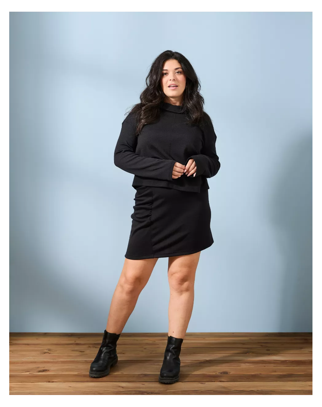 Un cocon de douceur et de chaleur, imaginé pour traverser l’automne et l’hiver avec élégance. Le pull, tricoté en laine mérinos, enveloppe sans alourdir, offrant une chaleur naturelle, respirante et régulatrice de température. La jupe, en parfaite harmonie, adopte une coupe féminine et près du corps qui suit les mouvements avec grâce. Ensemble, ils composent une silhouette à la fois douillette et raffinée, où le confort se marie à un style intemporel. La laine mérinos, douce au contact de la peau, apporte un tombé souple et élégant, tout en offrant des propriétés isolantes et thermorégulantes incomparables. Un duo pensé pour se sentir belle et bien, du matin jusqu’aux soirées d’hiver.