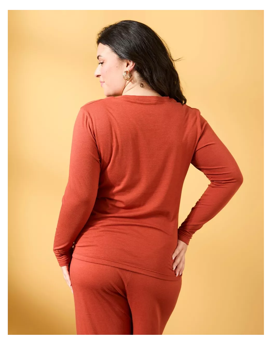 Ens. T-shirt manches longues + pantalon - coton modal - Terracotta
