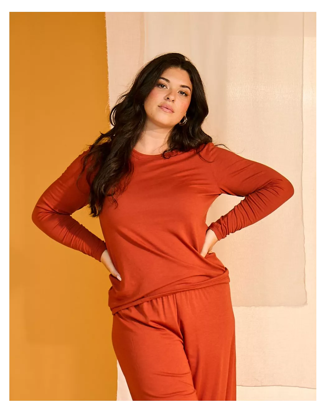 Nina est ce duo qui transforme l’intérieur en véritable cocon, un t-shirt manches longues près du corps, souple et extensible, qui épouse les lignes sans jamais contraindre. Un pantalon ample et fluide, pensé pour libérer le mouvement et inviter à la détente. La matière ? Un jersey de coton modal, sélectionné pour sa douceur soyeuse et sa souplesse naturelle. Léger, mais résistant, il respire avec vous, régule la chaleur et conserve son confort lavage après lavage. Porté à même la peau, il laisse une sensation fraîche et enveloppante, presque imperceptible. Conçu pour la maison, Nina incarne l’alliance parfaite entre confort absolu et allure discrète.