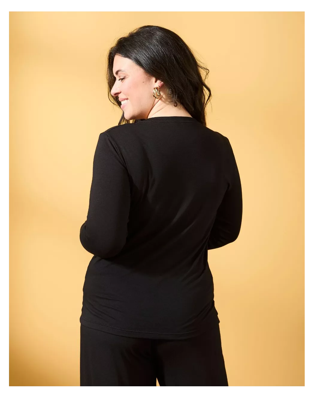 Nina, dans sa version noire, incarne l’élégance intemporelle du homewear soigné. Conçu dans un coton modal à la douceur soyeuse et à la fluidité naturelle, cet ensemble associe un t-shirt manches longues près du corps, mais extensible, et un pantalon ample au tombé souple et raffiné. Le noir sublime cette matière en lui donnant encore plus de profondeur et de caractère : une teinte classique, élégante et universelle, qui traverse les saisons sans perdre de son aura. Pensé pour épouser le quotidien avec confort et justesse, Nina devient ce duo essentiel, discret, mais toujours impeccable, l’équilibre parfait entre confort intime et allure subtile.