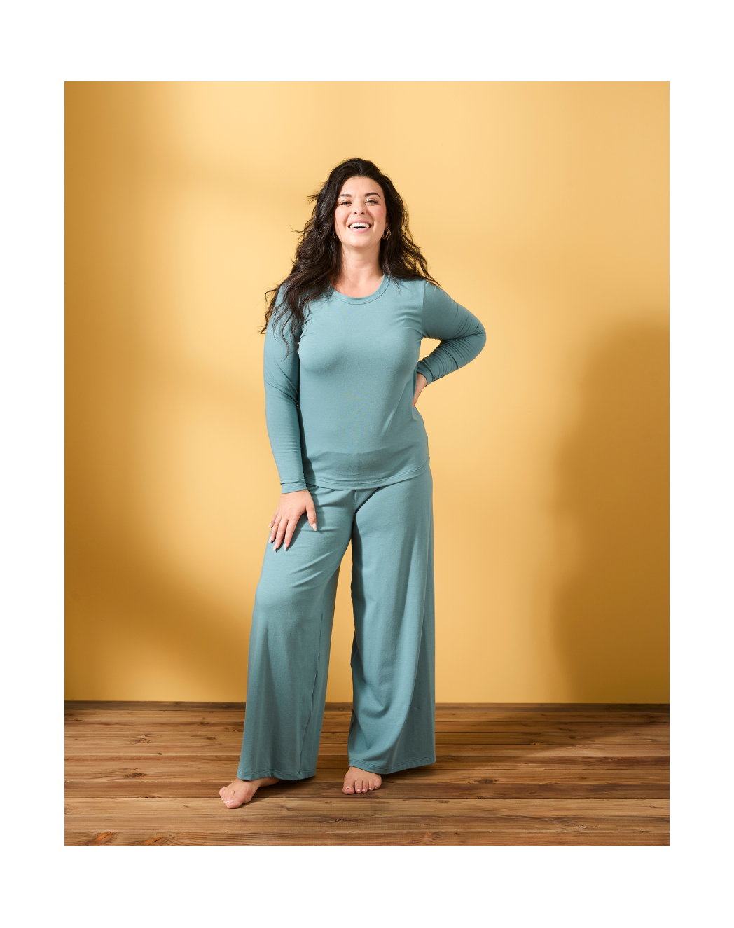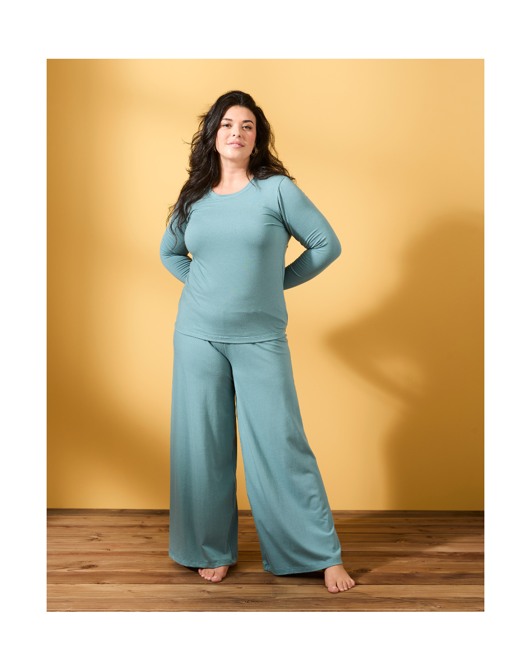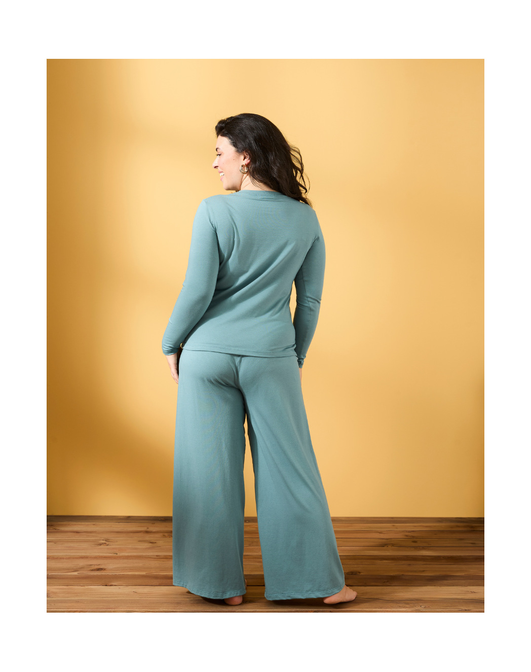 Adoptez le confort ultime avec notre pantalon fluide en doux mélange de coton modal, agréable à porter tout au long de l'année. La combinaison du coton et du modal offre un toucher soyeux et une grande résistance, faisant de ce pantalon une pièce durable et incontournable. Que vous le portiez seul ou en ensemble avec notre top Nina, il vous procurera un confort absolu pour des moments de détente à la maison.