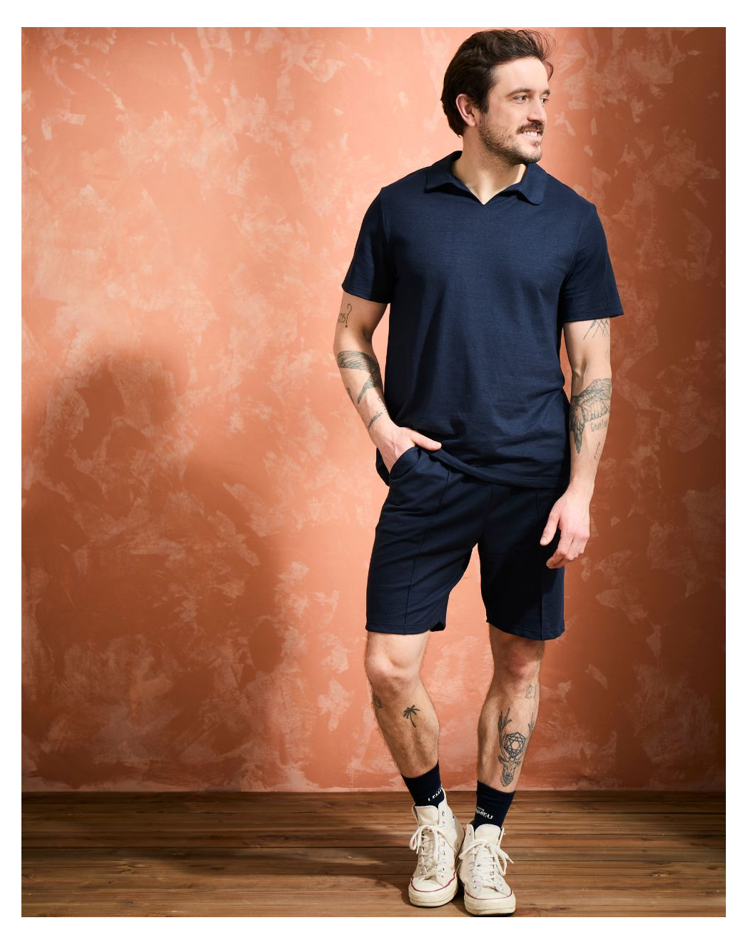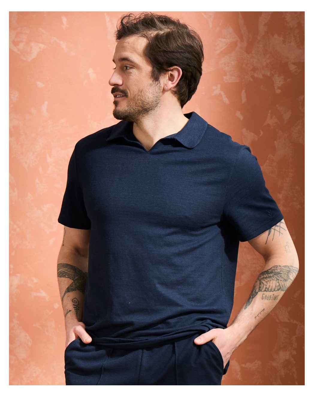 Lucien, c’est l’élégance du polo revisitée avec la légèreté d’un souffle d’été. Tricoté dans un jersey uni de 190 g/m², il associe la douceur du coton à la fraîcheur du lin pour une sensation de confort naturel, respirant, presque imperceptible. Son col chemise sans boutons et sa patte fendue réinterprètent les codes du polo avec une touche moderne, décontractée, mais toujours raffinée. Les finitions sont pensées dans les moindres détails : ourlets à double surpiqûre pour une tenue qui dure, coutures plates pour un porté sans gêne, tout est là pour accompagner le mouvement, tout en fluidité. Lucien, c’est cette pièce qui donne de l’allure sans en faire trop. Celle qu’on enfile pour se sentir bien, libre et stylé.