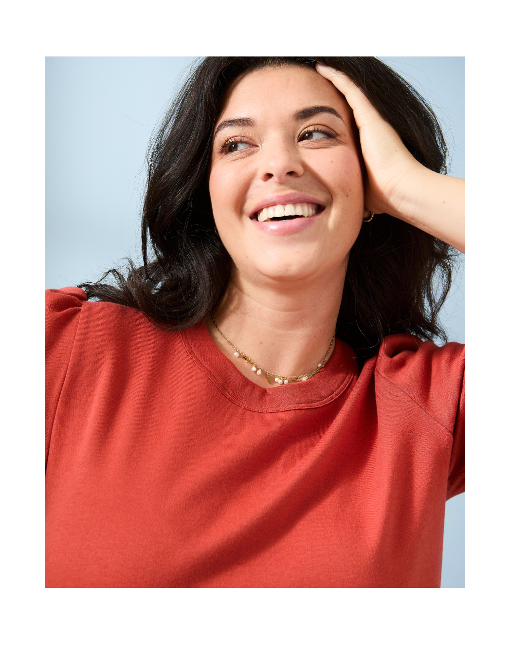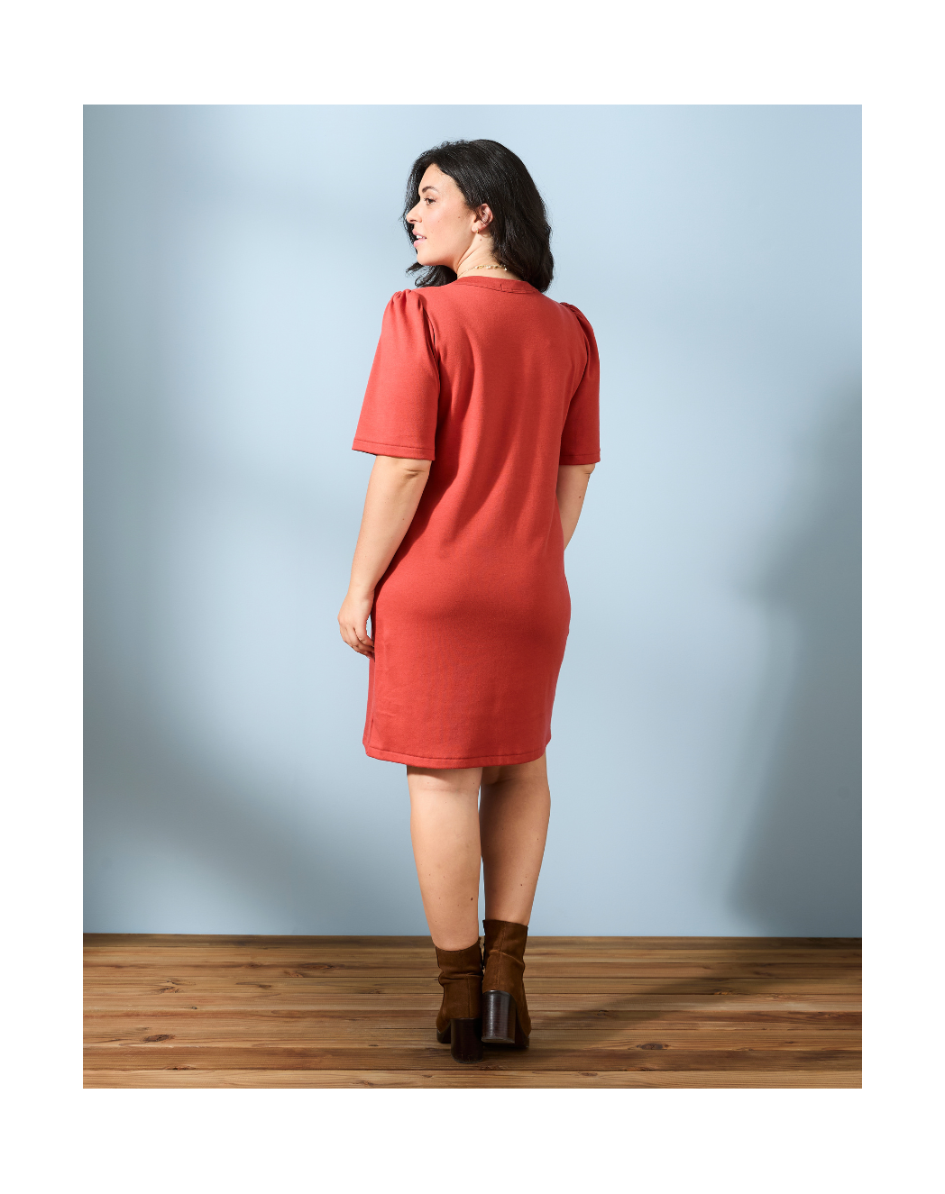 Fluide et flatteuse, cette robe allie le charme des manches bouffantes à une coupe droite décontractée qui sublime toutes les silhouettes sans les contraindre. Confortable à toute épreuve, elle vous accompagne avec élégance du quotidien aux moments les plus habillés. Son coloris tomette, à la fois chaleureux et raffiné, apporte une nuance subtile et affirmée à votre vestiaire. Une teinte solaire, facile à porter, qui traverse les saisons sans jamais perdre de son éclat. Polyvalente, chic, intemporelle : cette robe est une invitation à laisser parler votre style, en toute liberté.
