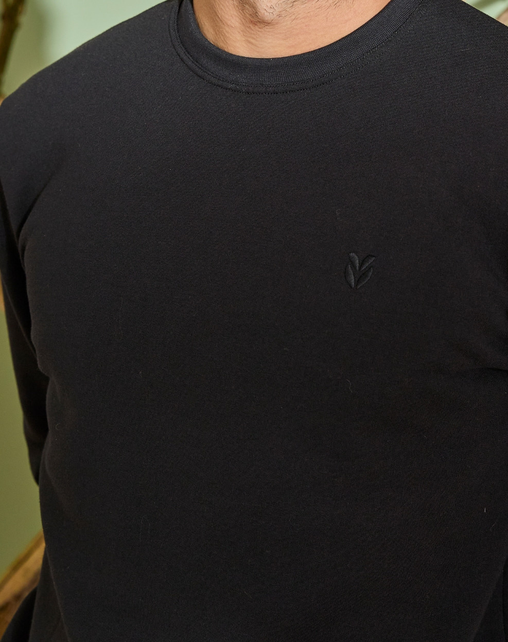 Sobriété maîtrisée. Petite broderie discrète pour signer la pièce avec élégance, bords-côtes en bas de vêtement et aux poignets pour le maintien, encolure renforcée pour une meilleure durabilité et des coutures propres qui assurent tenue et longévité.