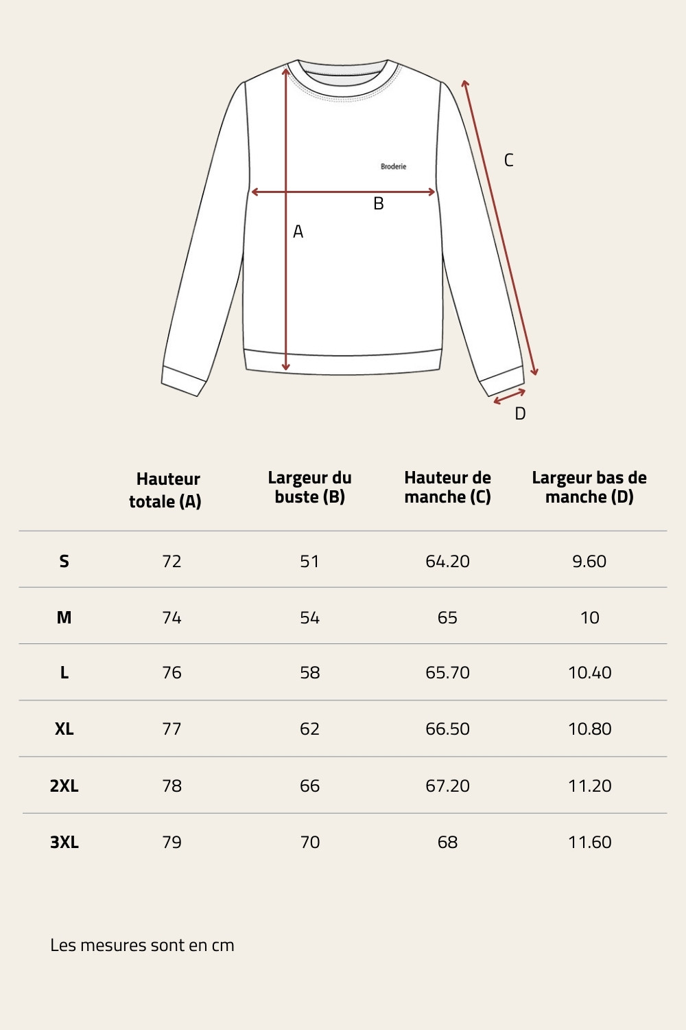 | Type de manches | Manches longues |