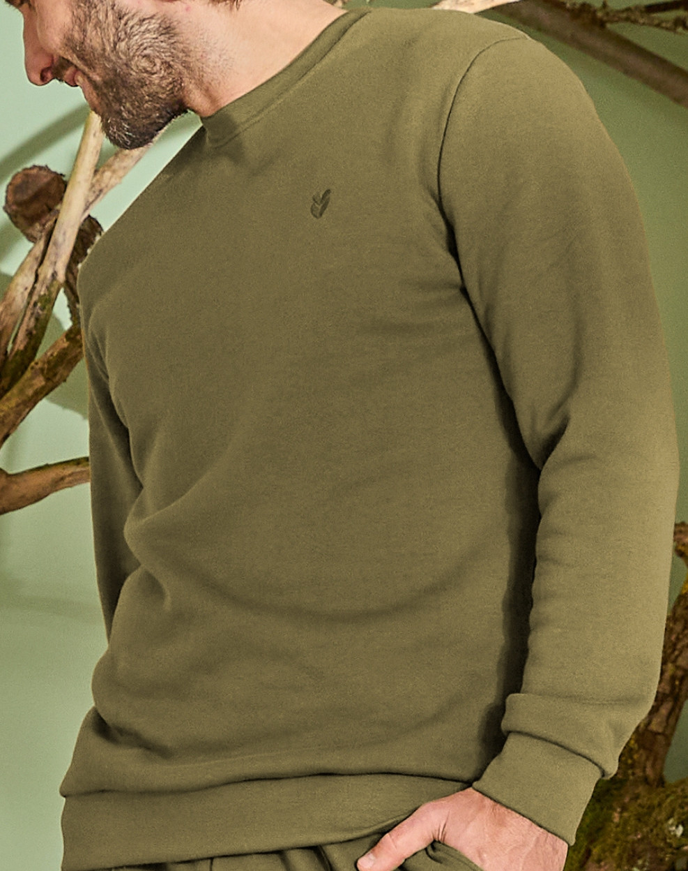 Sweat en Coton BIO Molleton - Vert Ecorce
