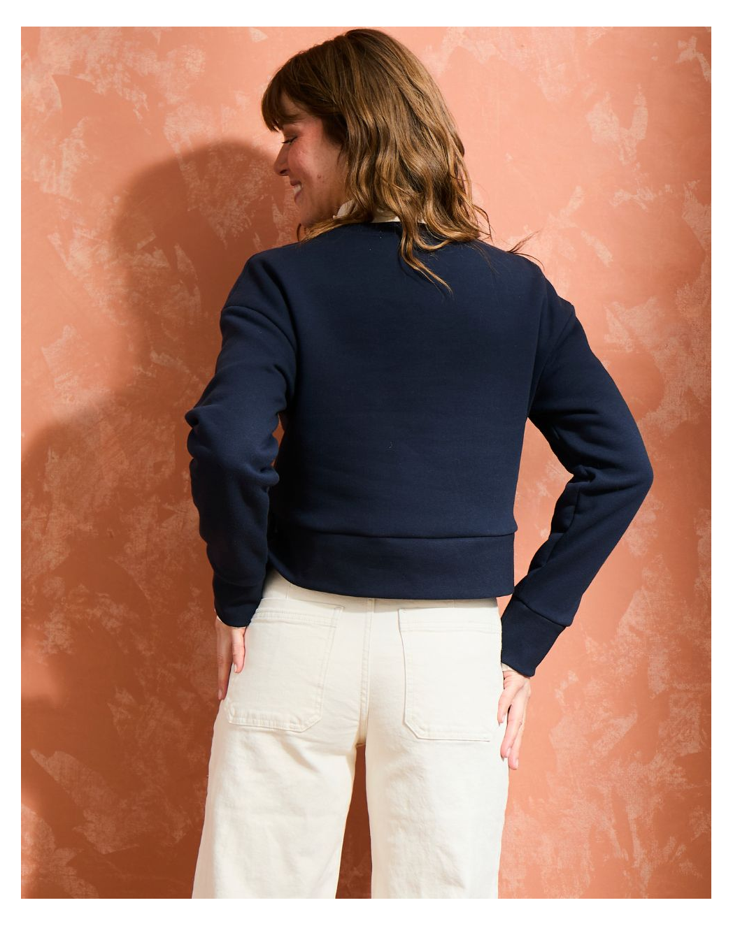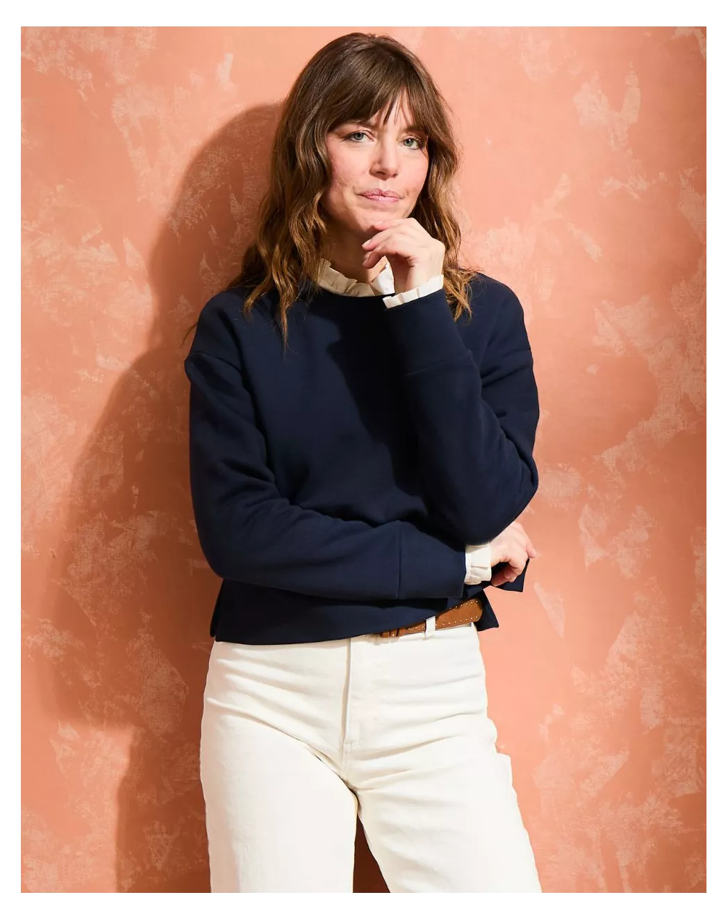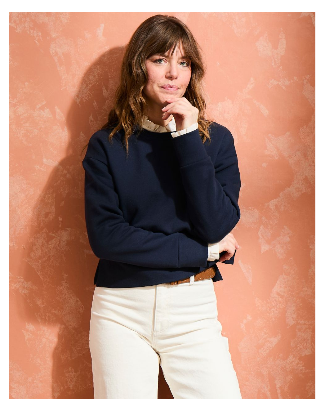 Le sweat Romy réinvente le confort avec une coupe courte et des fentes latérales, apportant une touche de modernité à son allure. Son molleton gratté à l’intérieur enveloppe la peau d’une douceur réconfortante, parfait pour les journées où l’on cherche à allier style et bien-être. Son bord-côte 100% coton en finition 1x1 assure un maintien naturel, sans élasthanne, pour une tenue impeccable qui suit vos mouvements. Discrète mais essentielle, la broderie signature vient signer ce modèle, pensé pour sublimer le quotidien avec élégance et décontraction.