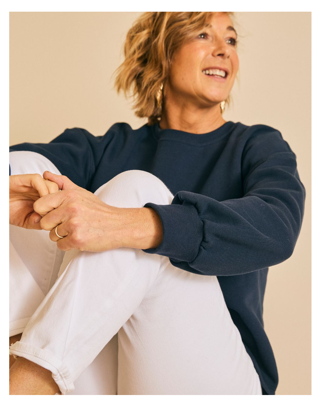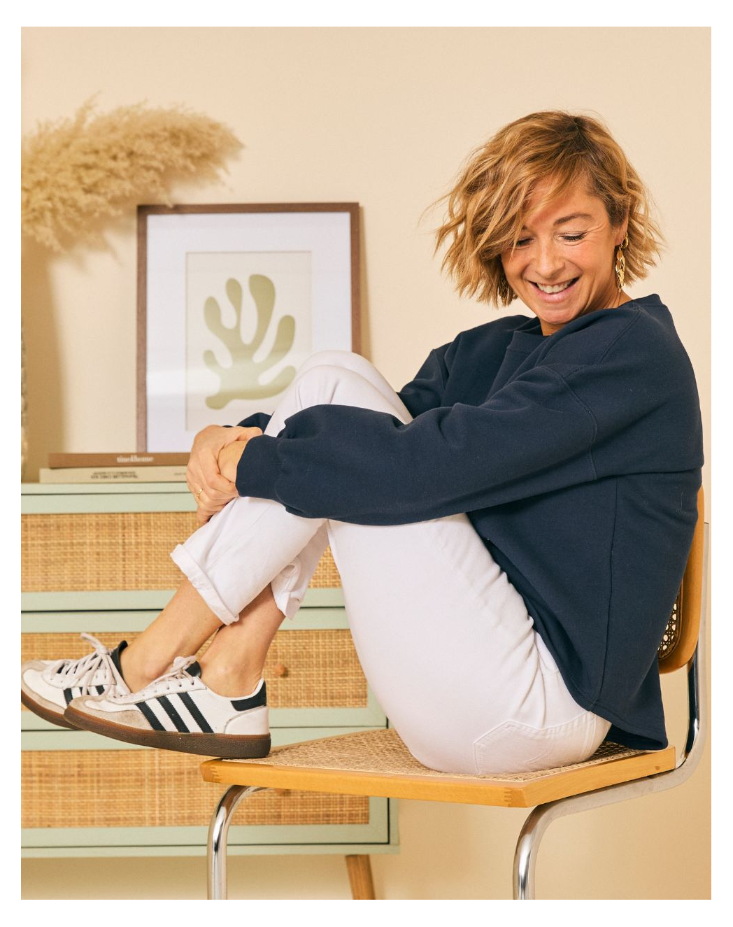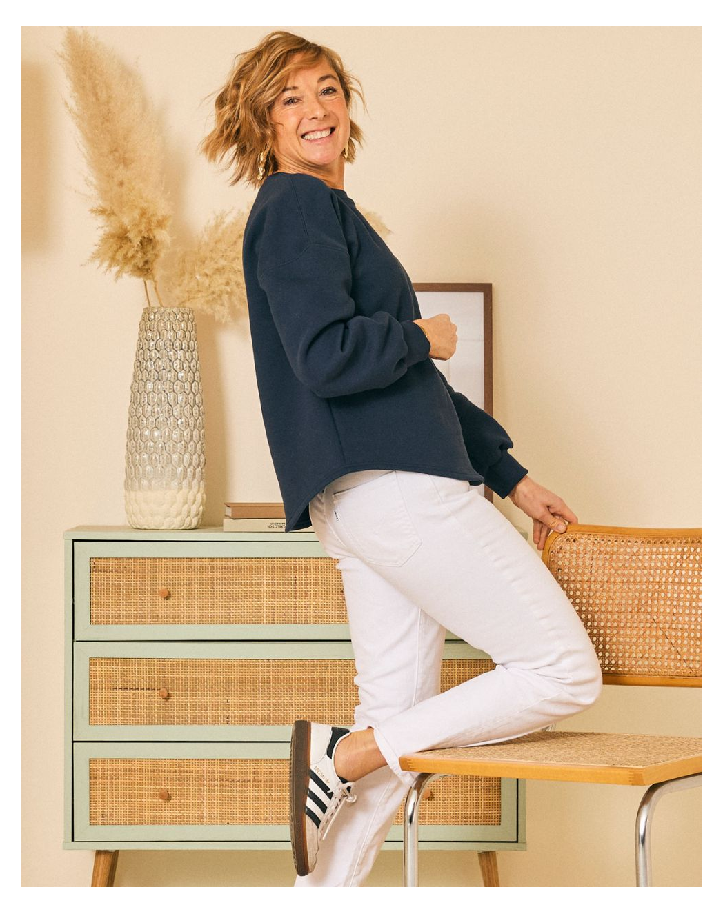 Sam est un sweat pensé pour conjuguer féminité et confort avec modernité. Son molleton gratté 100% coton, d’un grammage de 280 g/m², apporte une sensation de chaleur douce et enveloppante, idéale pour toutes les saisons. Le toucher moelleux contraste subtilement avec la structure de sa coupe. Les emmanchures descendues, finement resserrées aux poignets par un bord-côte en coton et rehaussées de fronces délicates, créent un joli volume aux manches, pour un effet vaporeux et résolument féminin. Le col rond rapporté et l’ourlet bas à double surpiqûre assurent une finition soignée et intemporelle. On aime le détail signature, la double surpiqûre subtile le long des épaules et autour des emmanchures, qui souligne la qualité du savoir-faire. Un sweat qui conjugue allure décontractée et élégance graphique, parfait pour insuffler une touche de modernité à vos essentiels.