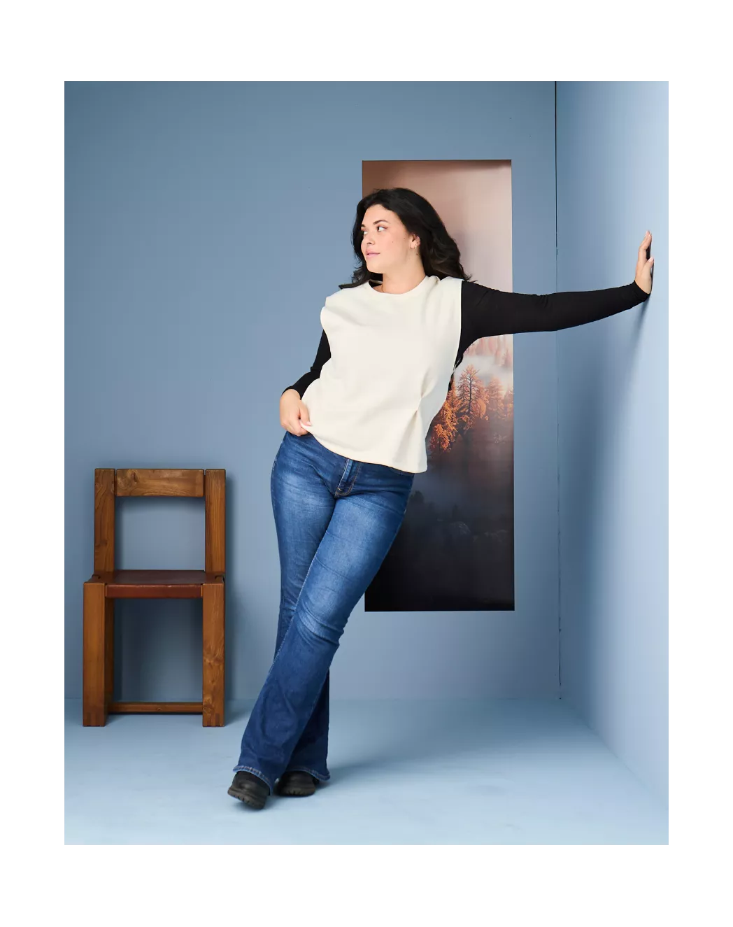 Facile à enfiler sur vos chemises, pulls fins ou t-shirts préférés, il apporte tout de suite du style sans sacrifier le confort. Son molleton épais et doux enveloppe agréablement et donne une belle tenue. Le petit pli sur le côté met en valeur la taille tout en douceur, pour une silhouette féminine et moderne. À l’arrière, la broderie discrète ajoute la touche chic qui fait la différence. À mixer avec un jean pour un look casual ou un pantalon élégant pour une allure plus habillée. Une pièce versatile et ultra-mode, parfaite pour réveiller vos tenues de saison.