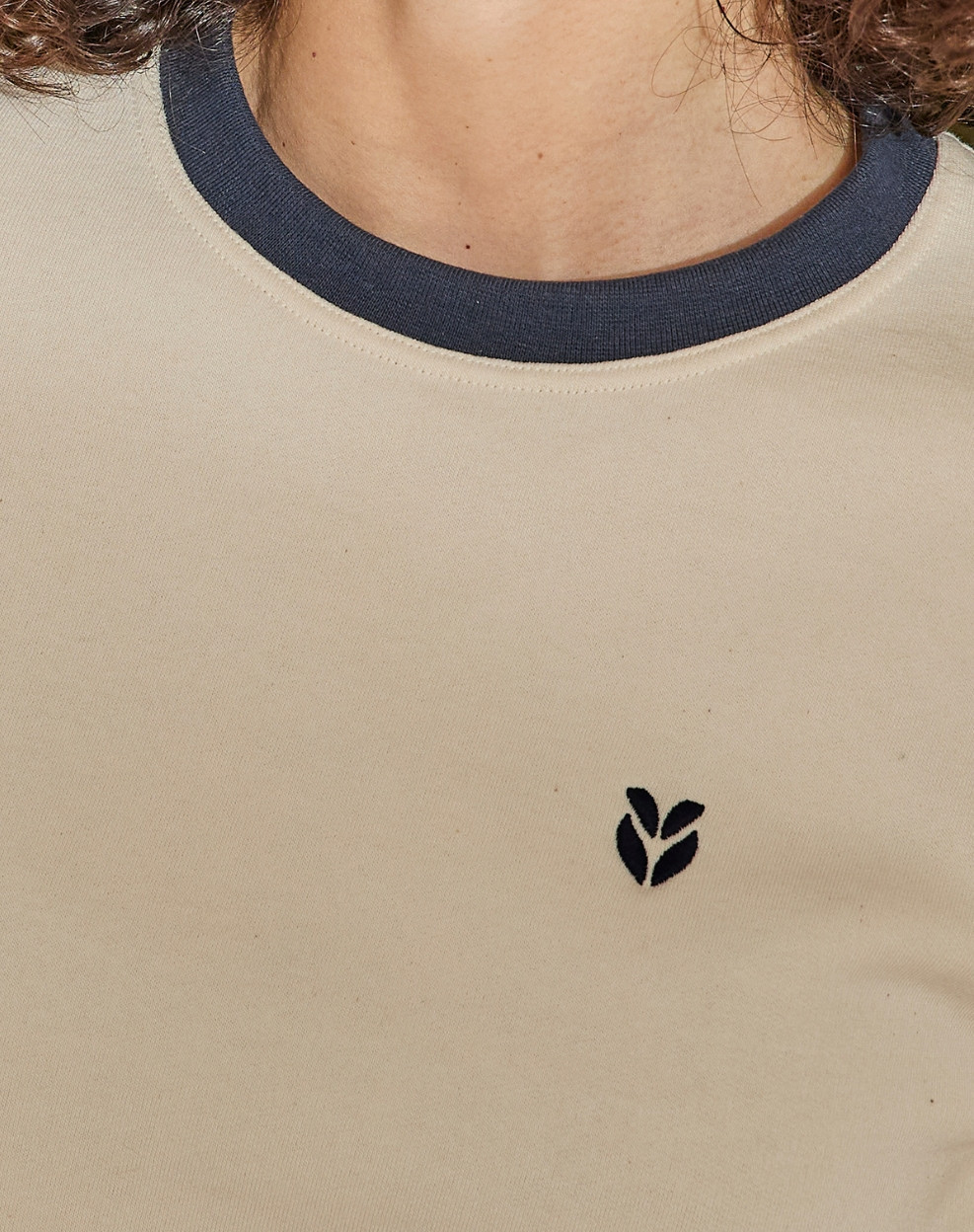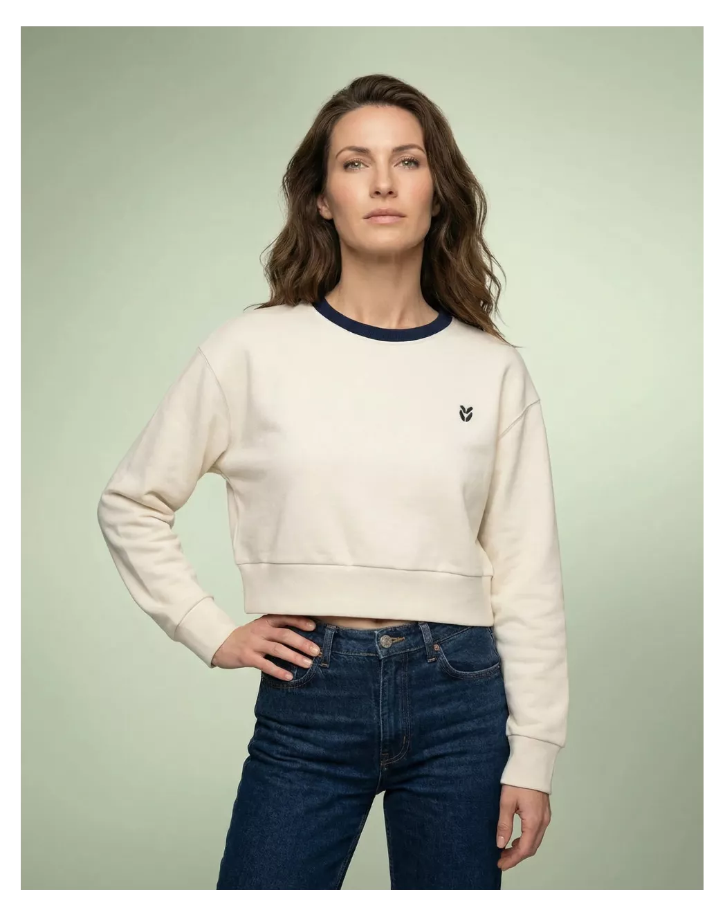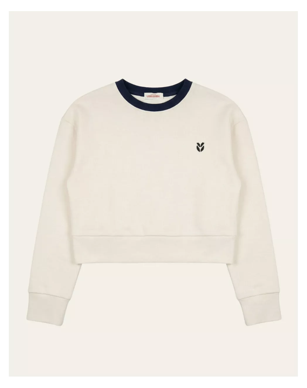 Sweat cropped en Coton BIO - Ecru/Marine