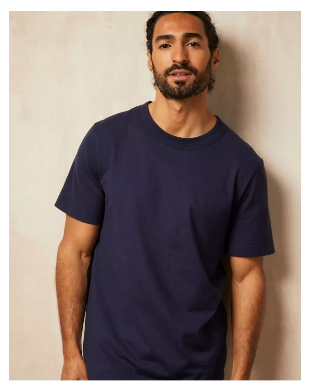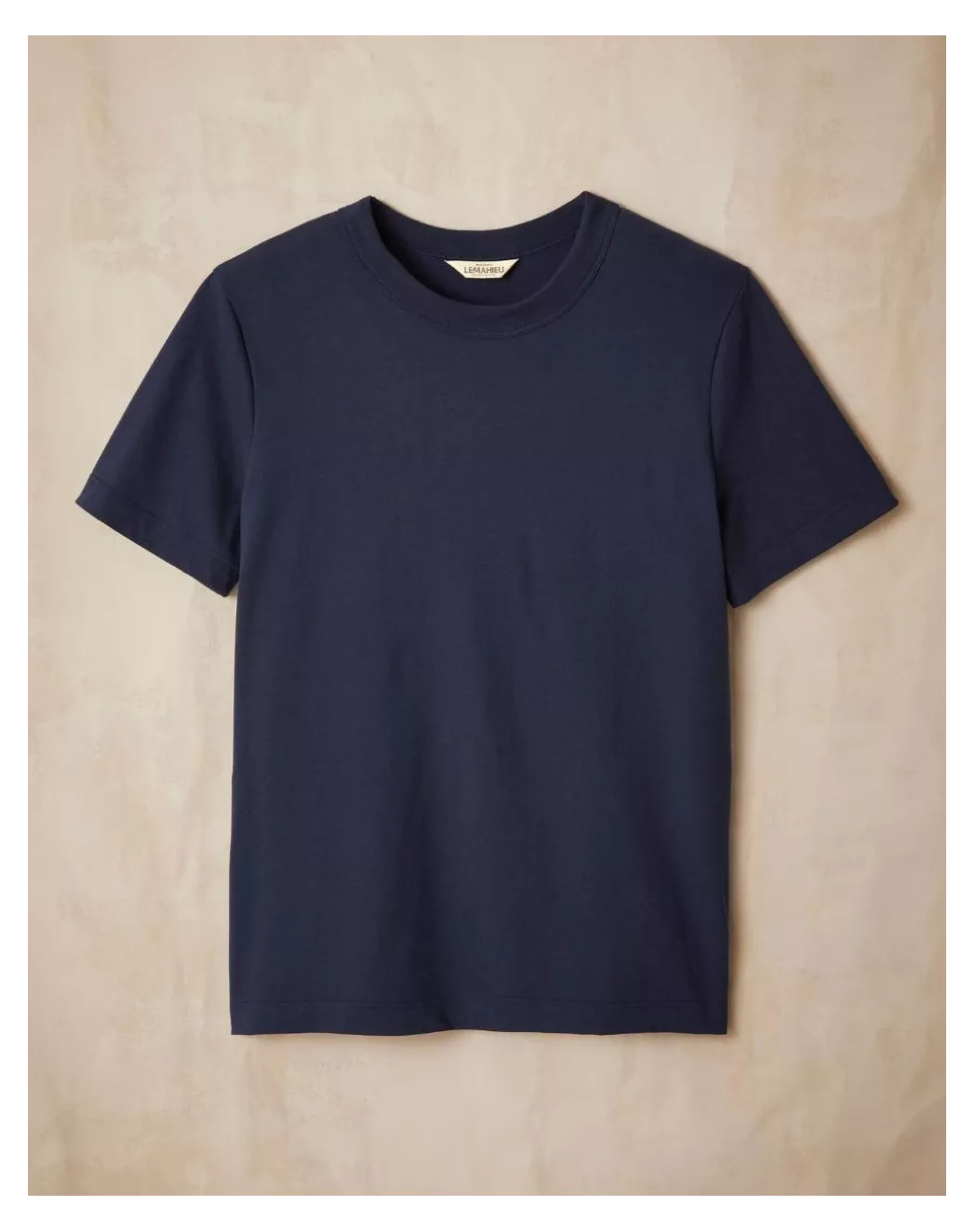 Parce que votre armoire mérite son champion du monde : notre T-shirt français en coloris Marine est un incontournable. On a opté pour une coupe ample pour être à l'aise sans flotter, des manches taillées au millimètre, un col en bord-côtes pour un tombé impeccable, du coton doux pour un confort inégalé, tricoté avec un savoir-faire bien français, celui de nos ateliers de Saint-André-lez-Lille.