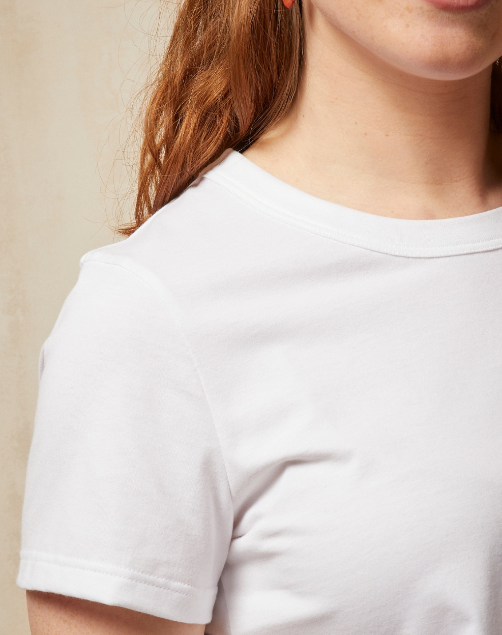 Gaby a été pensé comme le t-shirt repère du vestiaire : celui qui structure naturellement l’allure sans en faire trop. Nous avons travaillé l’équilibre des proportions et la largeur du colletage pour dessiner une ligne nette, qui encadre le visage et stabilise visuellement la silhouette. Son jersey de coton, choisi pour sa densité et sa tenue, accompagne le corps avec souplesse tout en conservant sa forme au fil des ports. Une pièce fiable et maîtrisée, conçue pour rester juste, saison après saison.