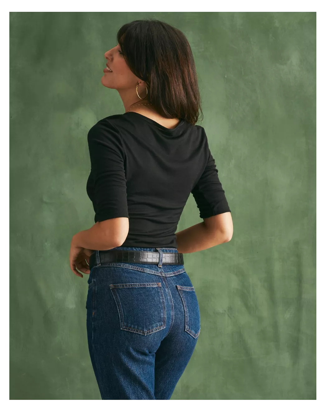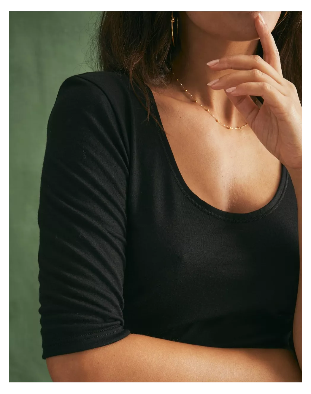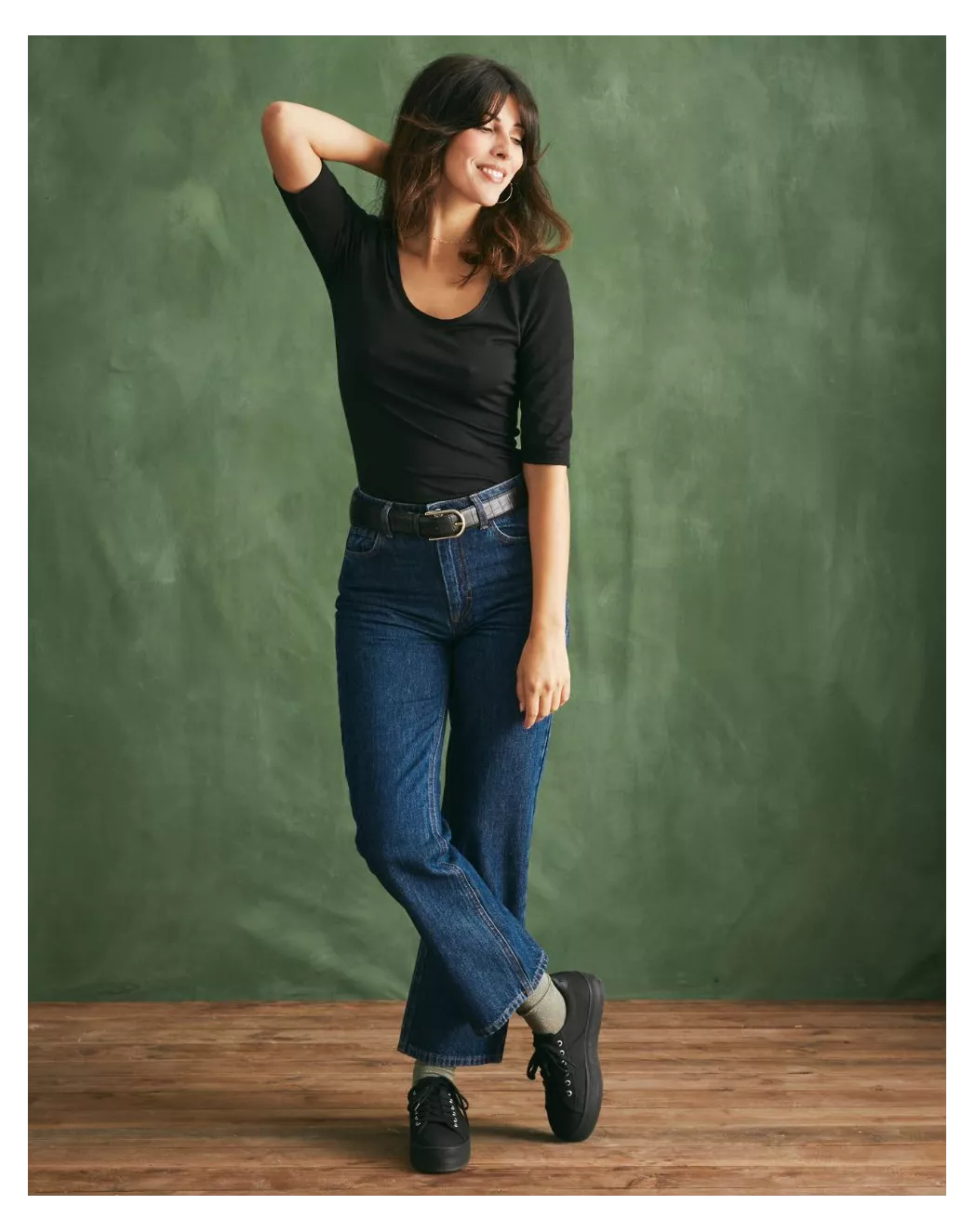 Le top Ellen se joue des contrastes entre élégance et confort, tricoté en 100% laine mérinos, il offre une douceur enveloppante et une chaleur naturelle, tout en restant respirant et léger sur la peau. Son décolleté flatteur et ses manches trois-quarts apportent une féminité subtile, idéale pour porter Ellen seule ou en superposition sous une veste ou un pull plus ample. Le lot chocolat et noir conjugue chaleur et sobriété : le chocolat se fait doux et enveloppant, tandis que le noir affirme une allure élégante et versatile. Pensé pour durer et accompagner tous les moments de la journée, Ellen est ce top que l’on porte avec aisance et style, en toute saison.