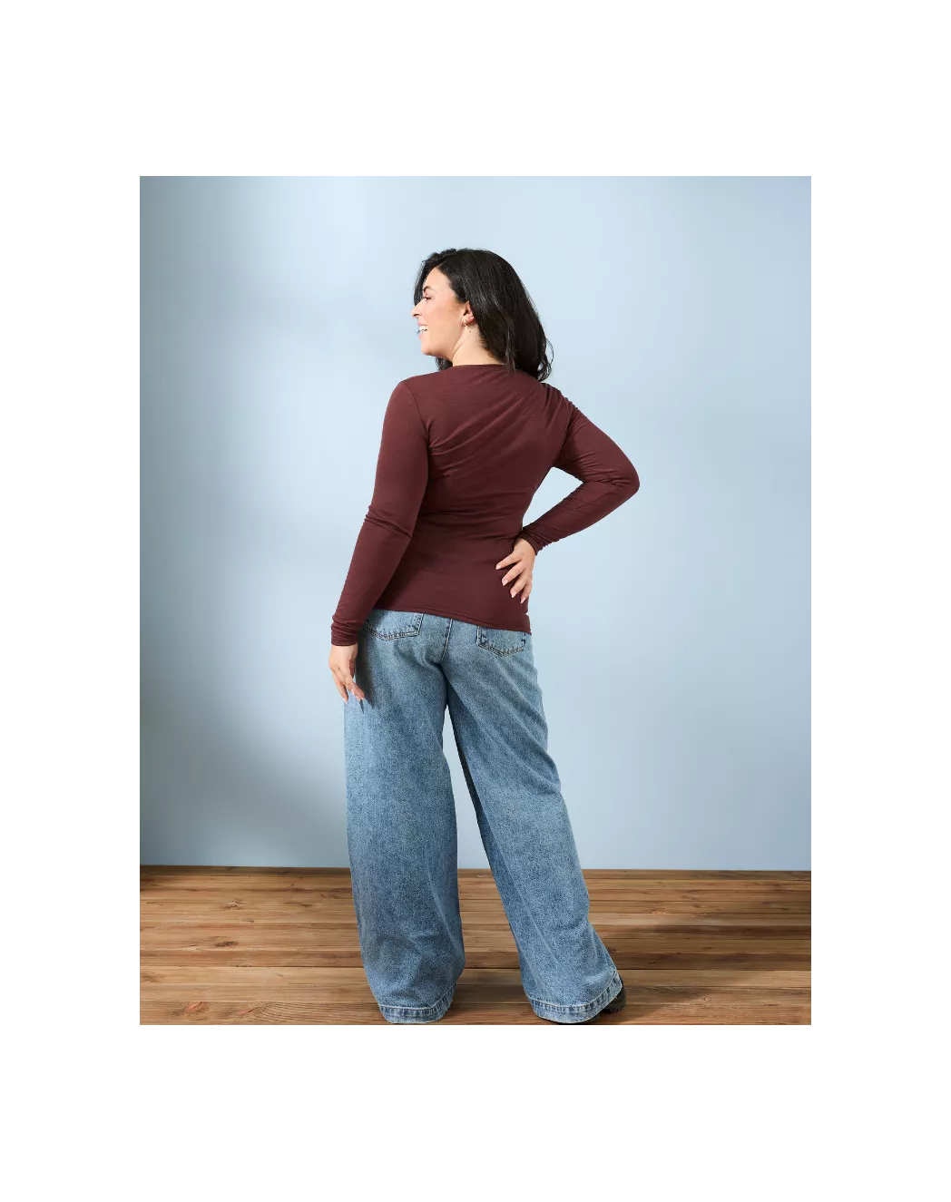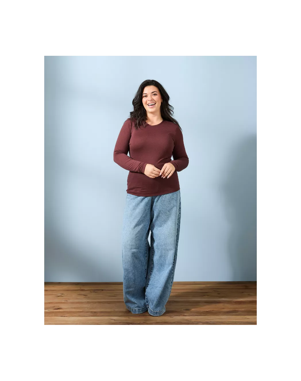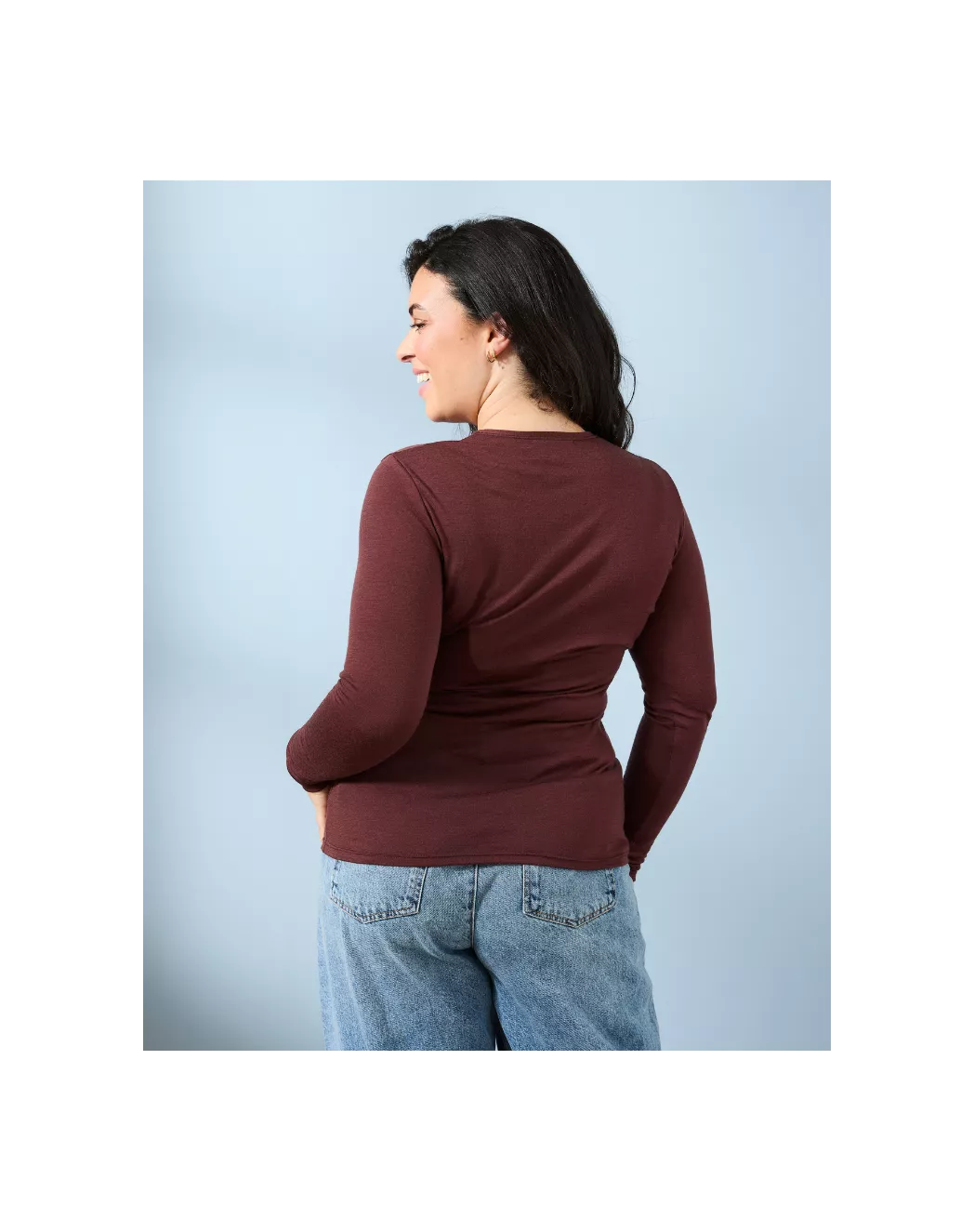 Élégance discrète, douceur absolue : le t-shirt manches longues mérinos pour femme.