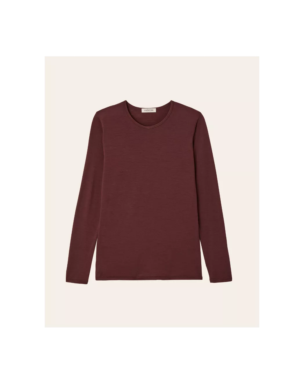 T-shirt manches longues col rond Laine Mérinos - Chocolat