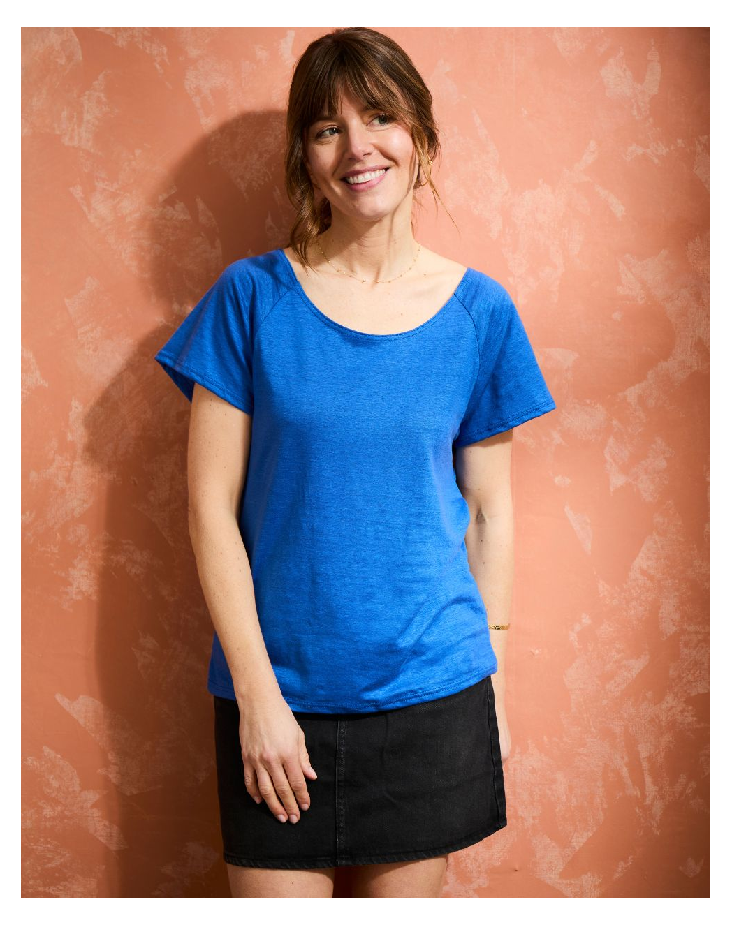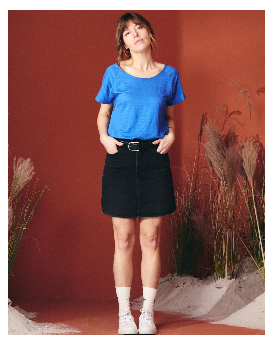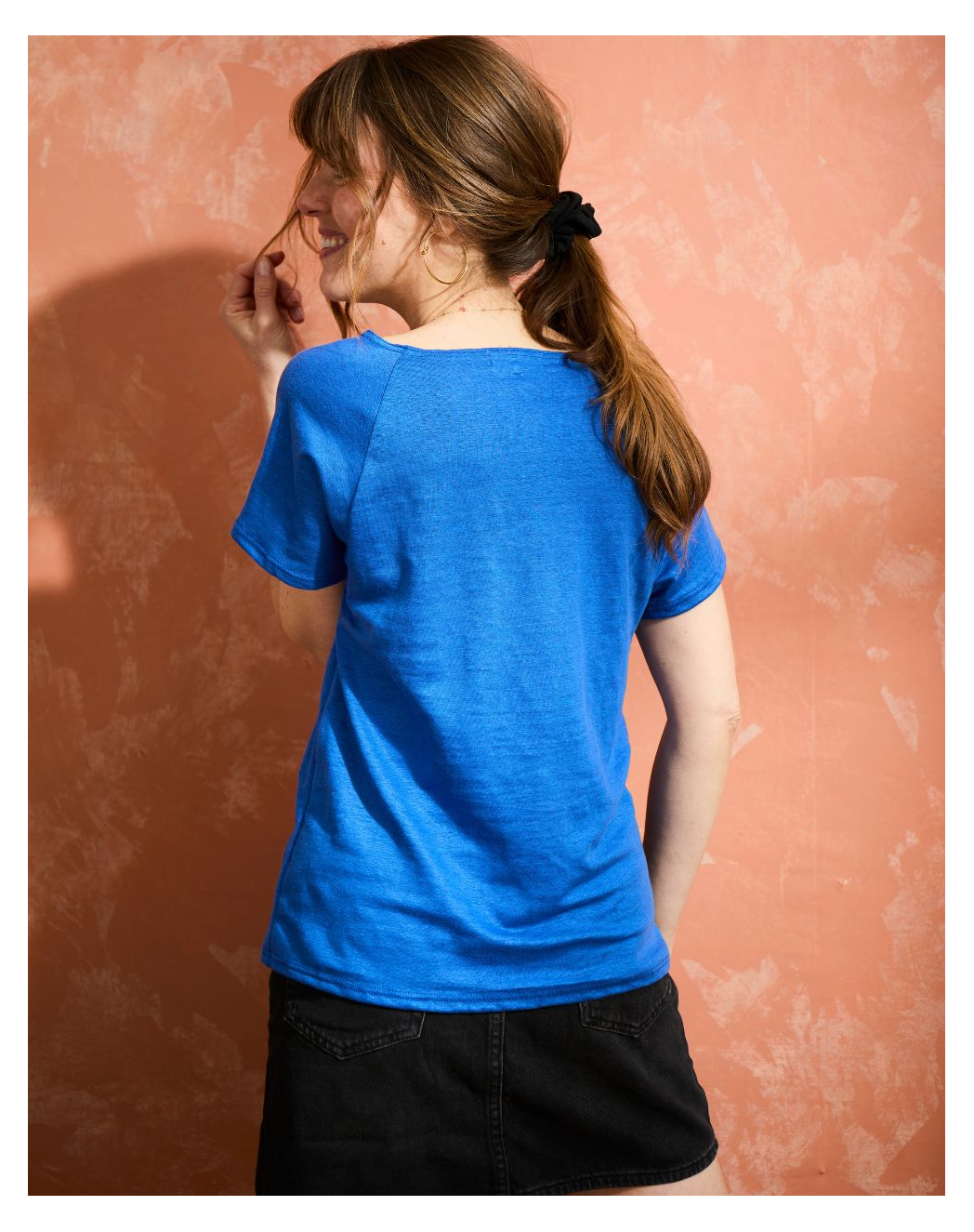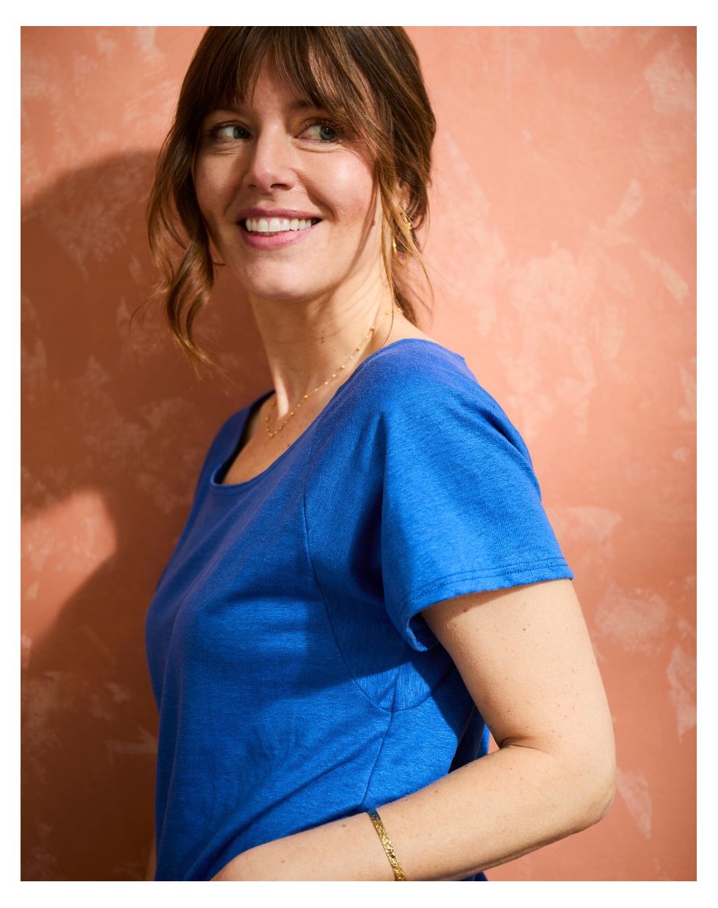 Un bleu électrique, intense et vibrant, qui capte la lumière et attire le regard. Alina, c’est le t-shirt en lin 100% français qui dynamise une silhouette en un clin d’œil. Sa coupe fluide épouse le corps avec légèreté, tandis que son col rond adoucit l’allure avec juste ce qu’il faut d’élégance. Porté sur un short blanc pour une fraîcheur estivale ou glissé sous un blazer pour un twist audacieux, il s’impose comme une pièce forte, celle qui donne du caractère sans jamais en faire trop.
