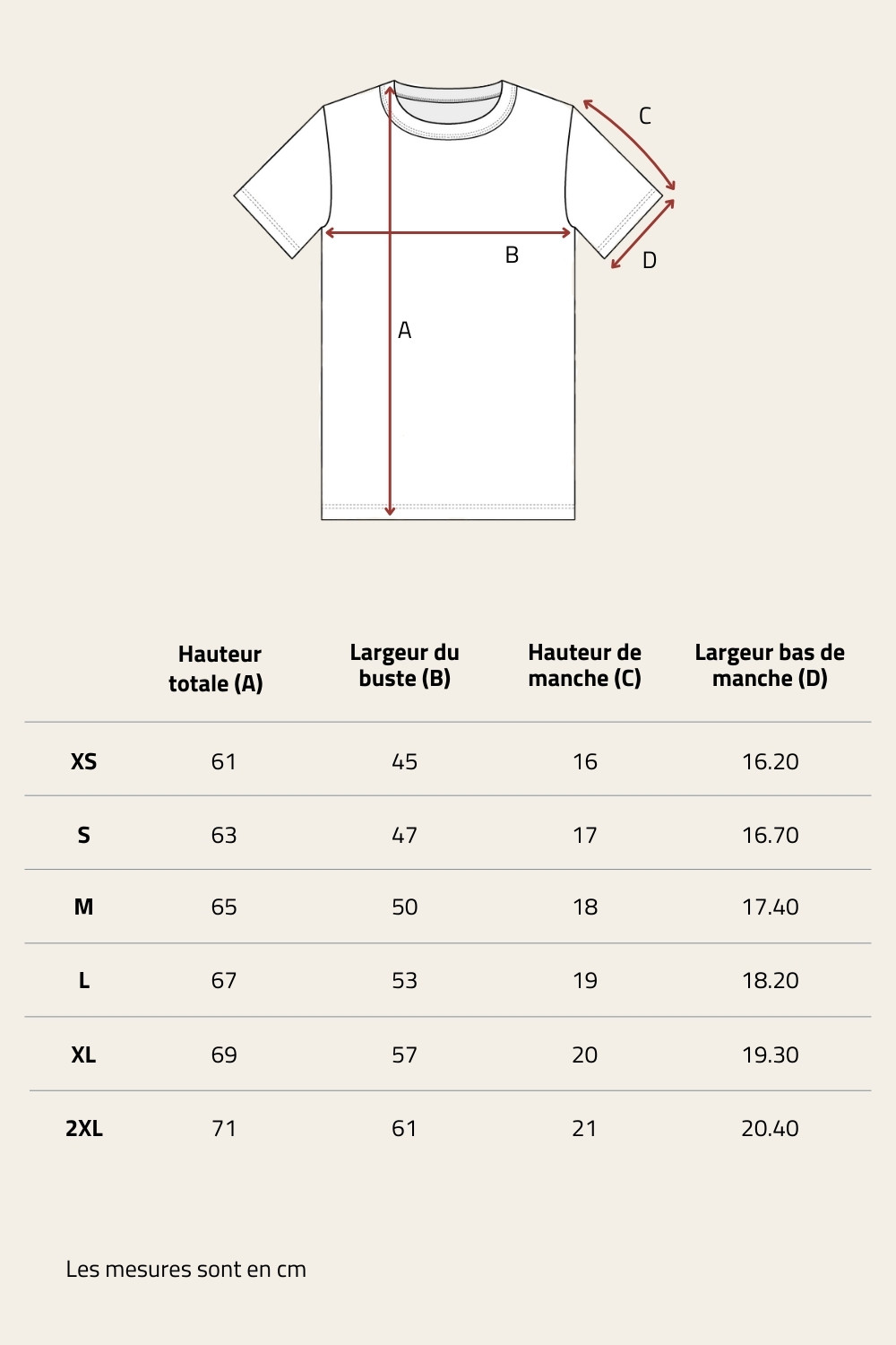 | Type de manches | Manches courtes |