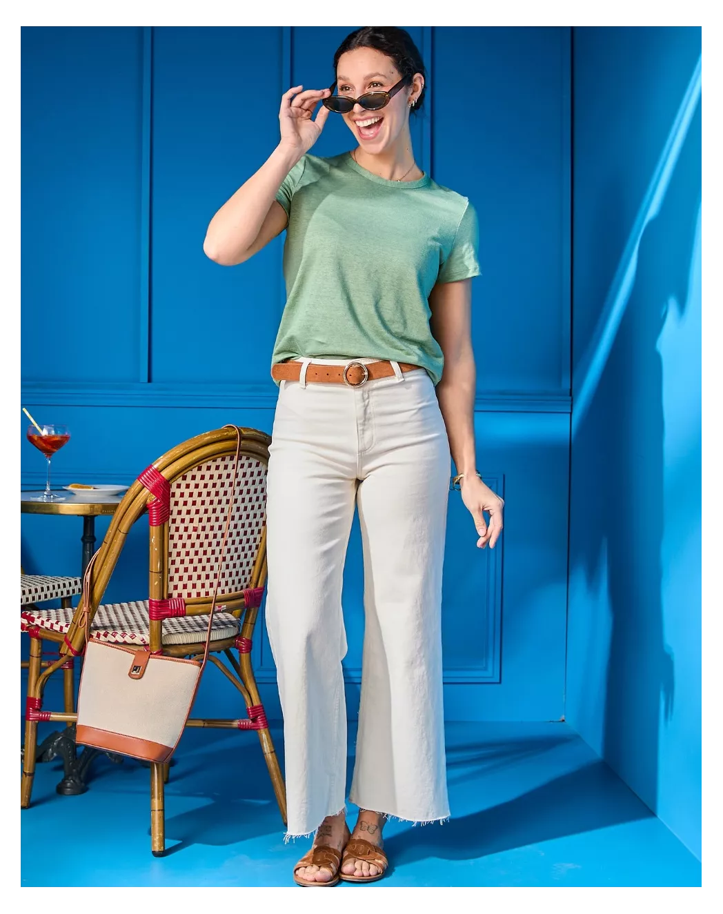 Alina révèle toute la beauté d’un lin 100% naturel, au grain vivant et au tombé parfaitement équilibré. Fluide sans être souple, structuré sans être rigide, il dessine une silhouette nette tout en laissant la matière respirer. Un essentiel élégant, authentique et lumineux, pensé pour traverser les beaux jours avec allure.