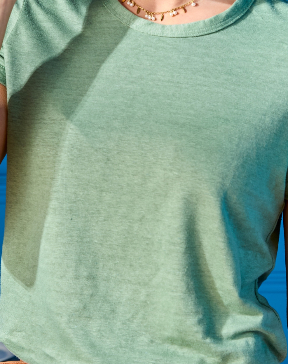Alina a été pensé pour révéler toute la noblesse d’un lin tricoté et confectionné en France, choisi pour sa robustesse naturelle et sa tenue durable. Son grammage de 230 g offre un tombé brut mais élégant, structuré sans rigidité, avec un drapé souple qui accompagne le mouvement. Chaque détail, de la tension de l’encolure à l’équilibre des manches, est étudié pour préserver confort et allure au fil du temps. Un essentiel sincère et résistant, conçu pour traverser les saisons avec caractère et douceur.