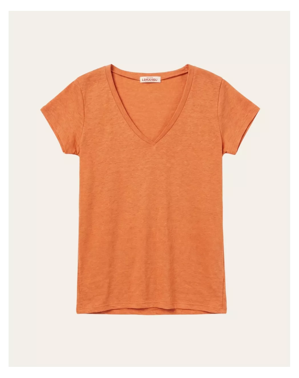 T-shirt col V 100% Lin - Orange Mandarine