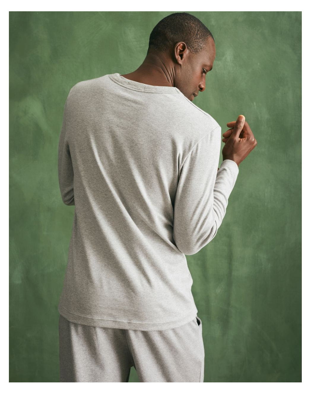 Ce t-shirt à manches longues uni est un véritable compagnon de tous les jours. Confectionné en maille interlock, il offre une tenue parfaite et une épaisseur remarquable, loin d'être léger. Son épaisseur est son atout majeur, lui conférant une structure et un aspect incroyables. Simple, mais efficace, grâce à sa coupe impeccable et ses finitions soignées, il se suffit à lui-même. En ville, associé à un jean, vous n'avez besoin de rien d'autre pour être stylé avec Robin !