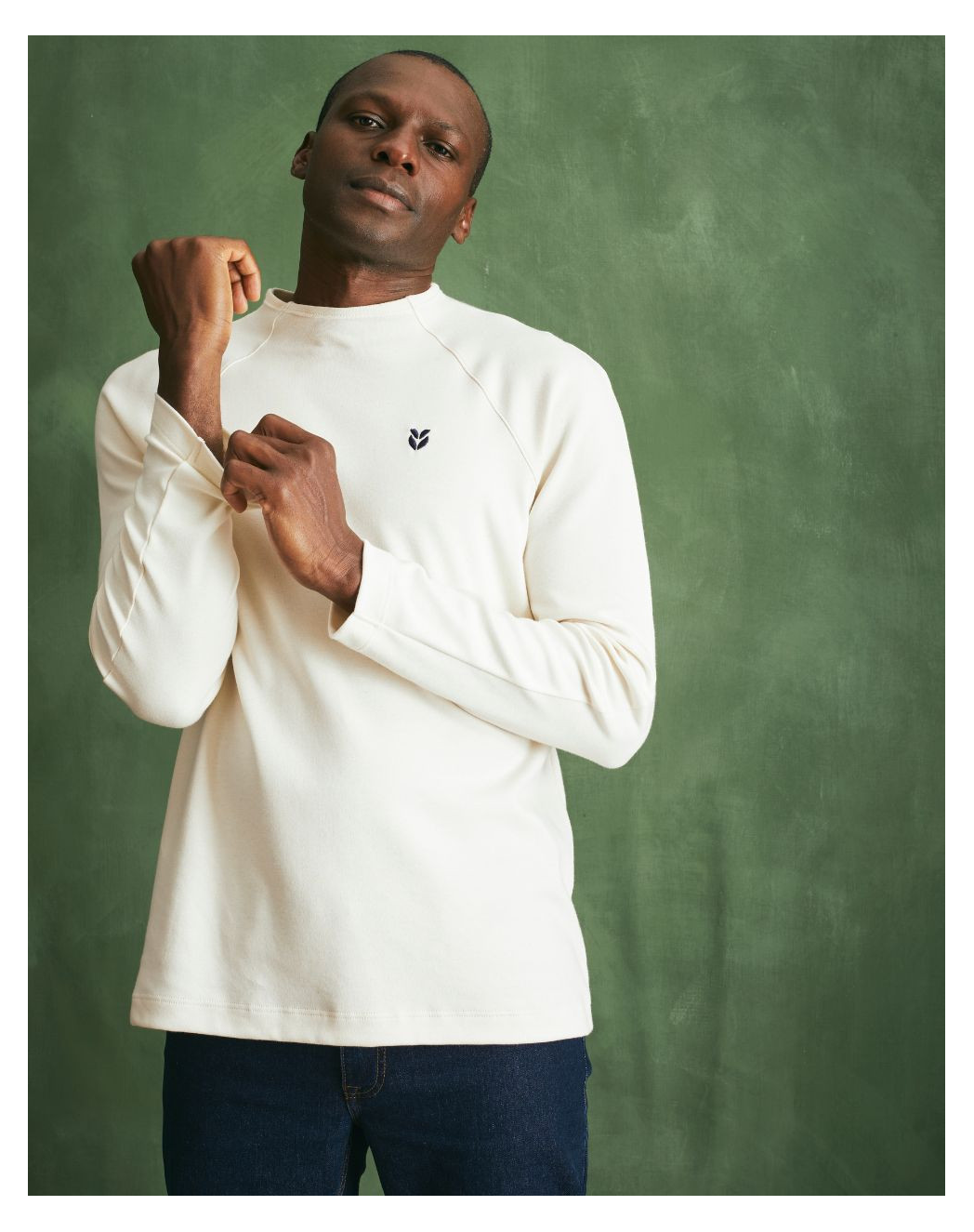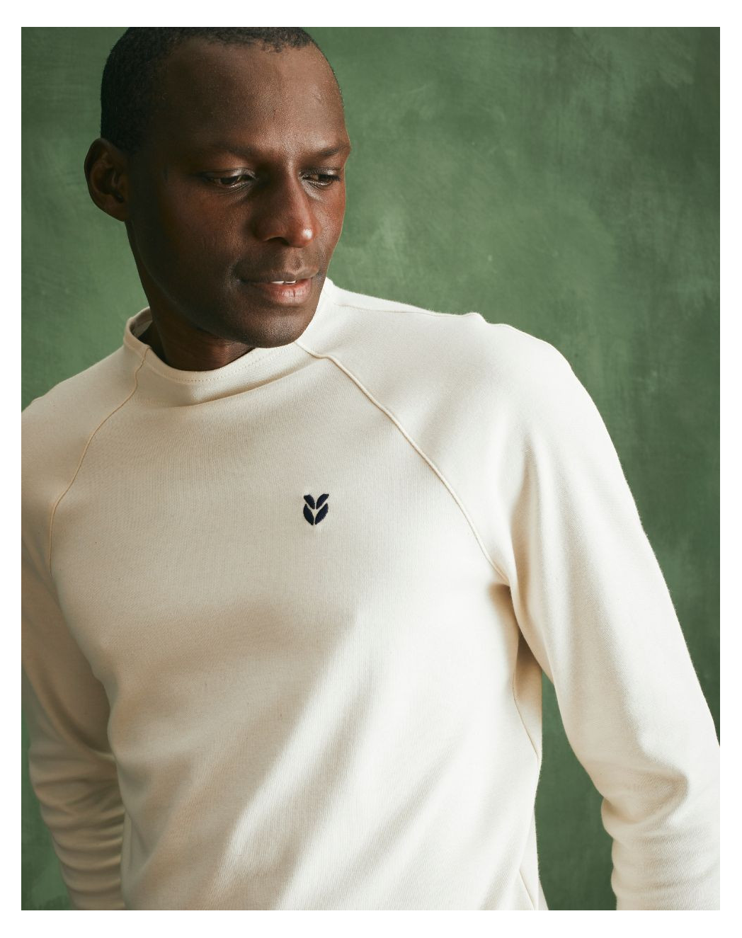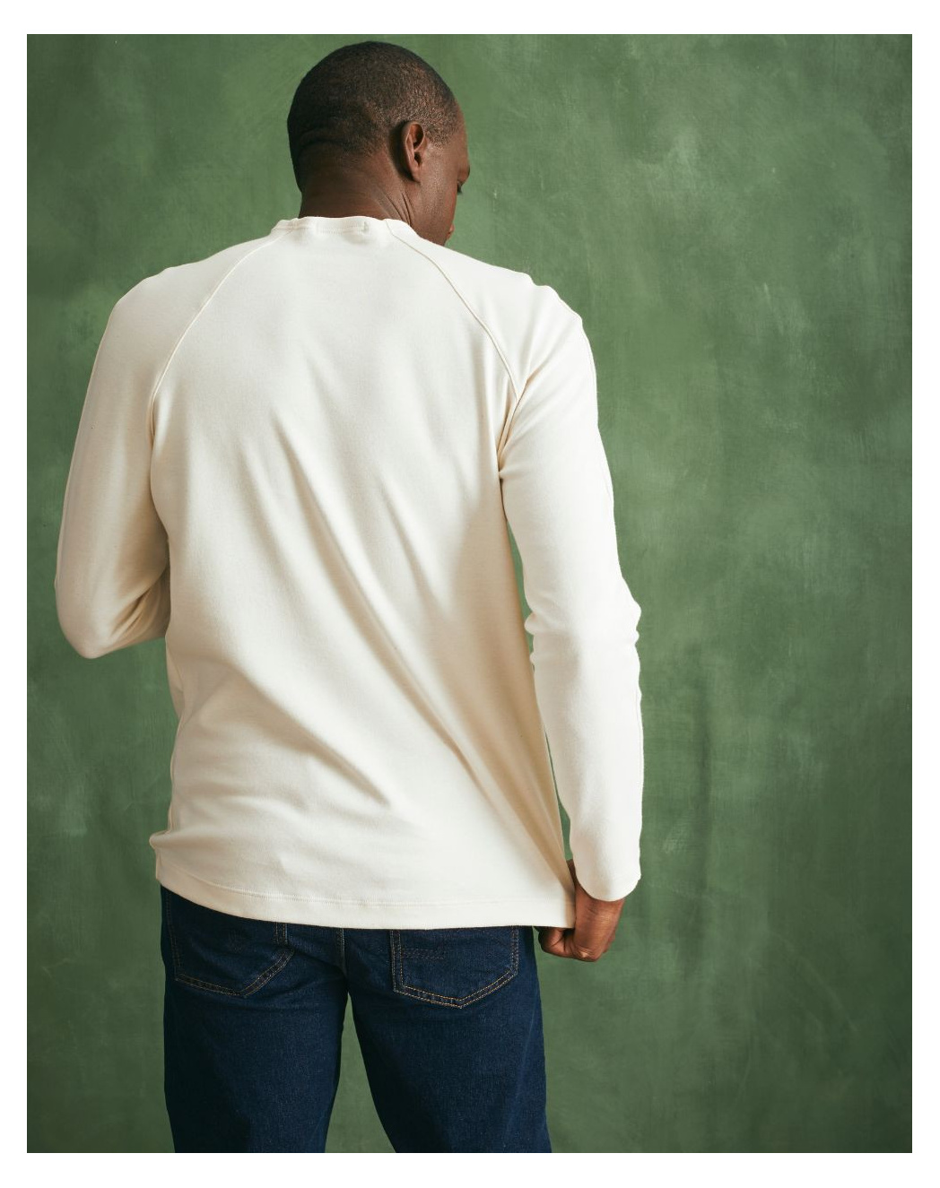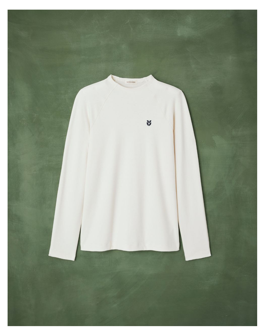 Élégant et polyvalent, ce t-shirt à manches longues et col montant vous assure une silhouette impeccable. Confectionné en interlock coton de 240 grammes, il se distingue par sa résistance et sa tenue parfaite. Travailler cette forme avec des manches raglan a été un réel défi, faisant de ce modèle le coup de cœur de cette collection.