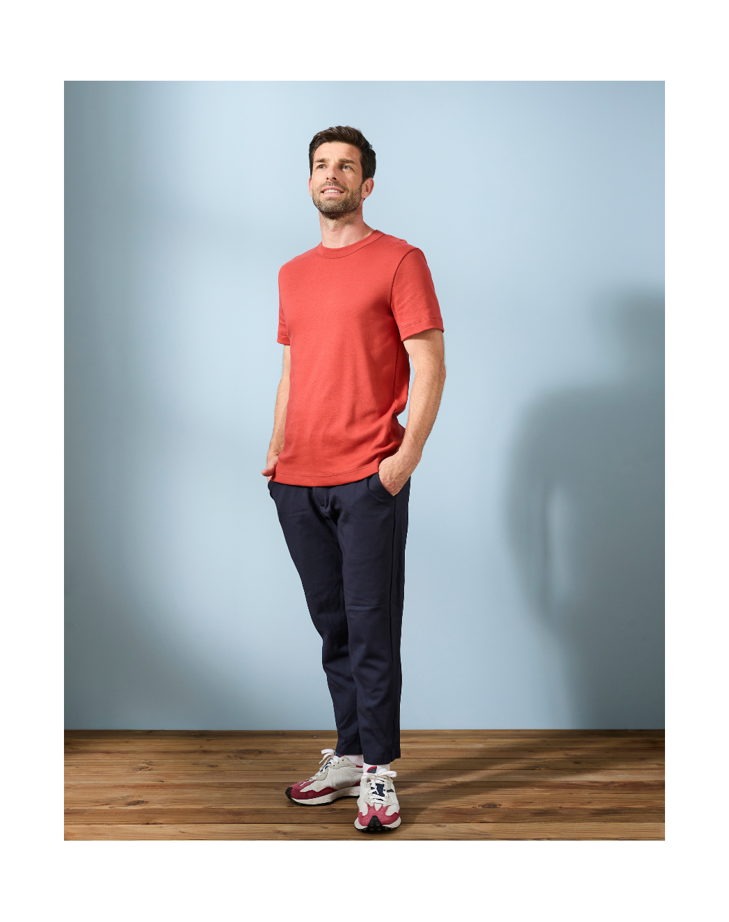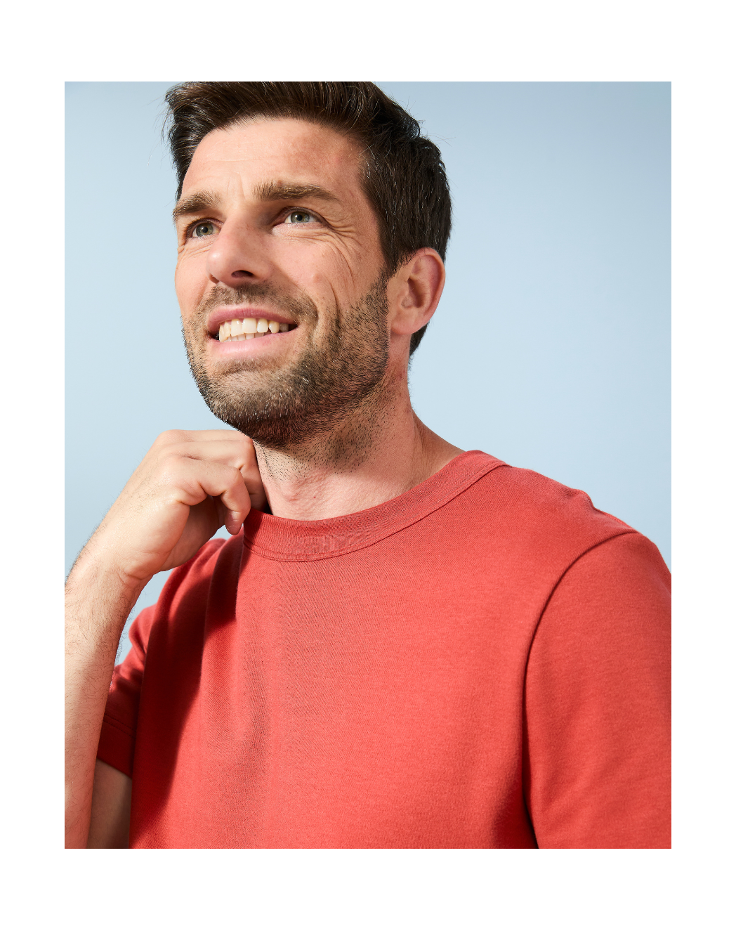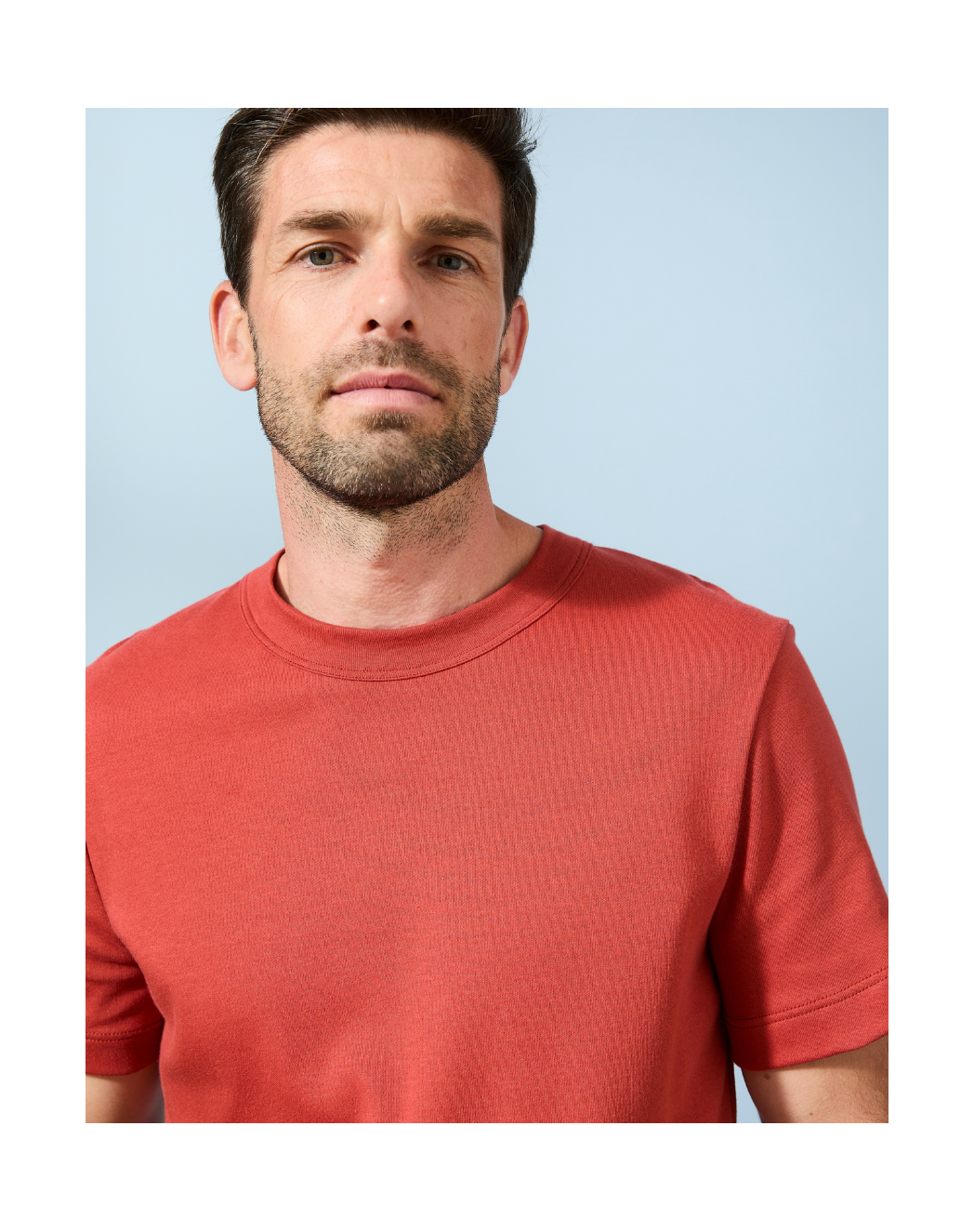 Plongez dans l'essence même du style avec notre t-shirt épais. Sa coupe droite intemporelle et son col large, lui confèrent une allure résolument moderne. Tricoté dans nos ateliers dans un jersey de Coton Bio en 240g/m2, ce t-shirt épais offre une épaisseur luxueuse et une tenue impeccable qui vous accompagnera tout au long de la journée. Son caractère auto-suffisant en fait un indispensable de votre vestiaire, apportant une touche de sophistication à chaque tenue. En le portant, vous prenez conscience de l’attention nécessaire pour fabriquer un tel t-shirt. Plus épais qu’un t-shirt classique, il vous procurera un sentiment de bien-être lorsqu'il fait plus frais.