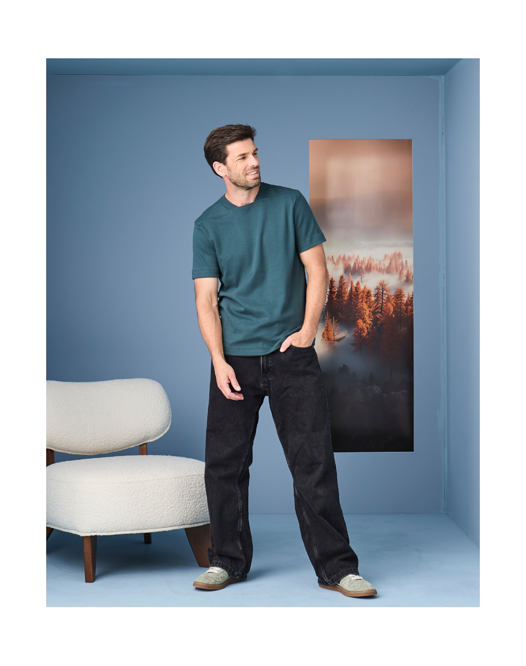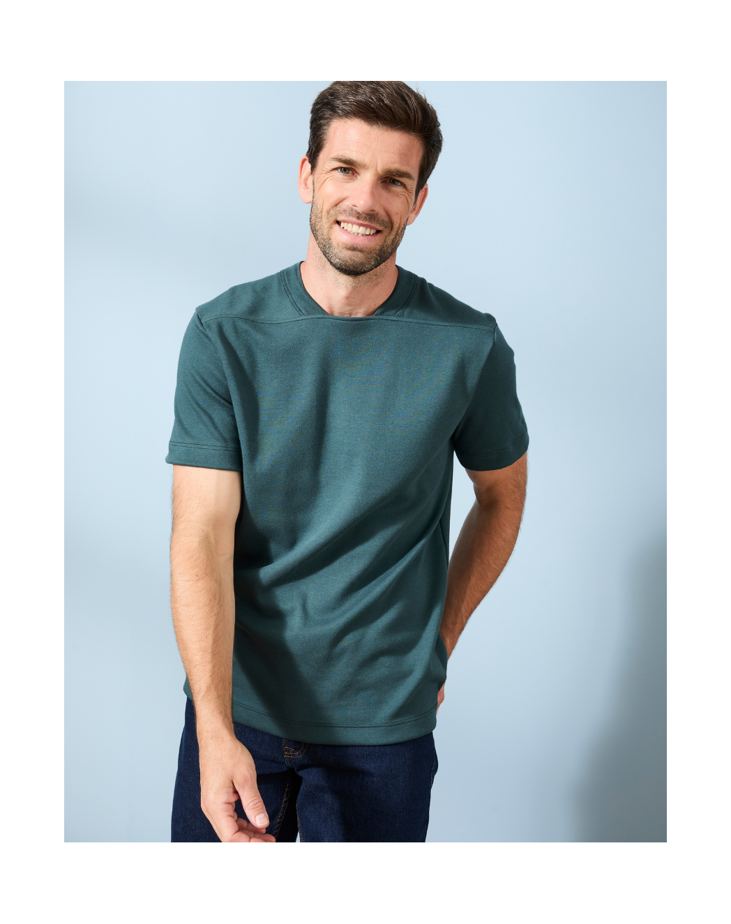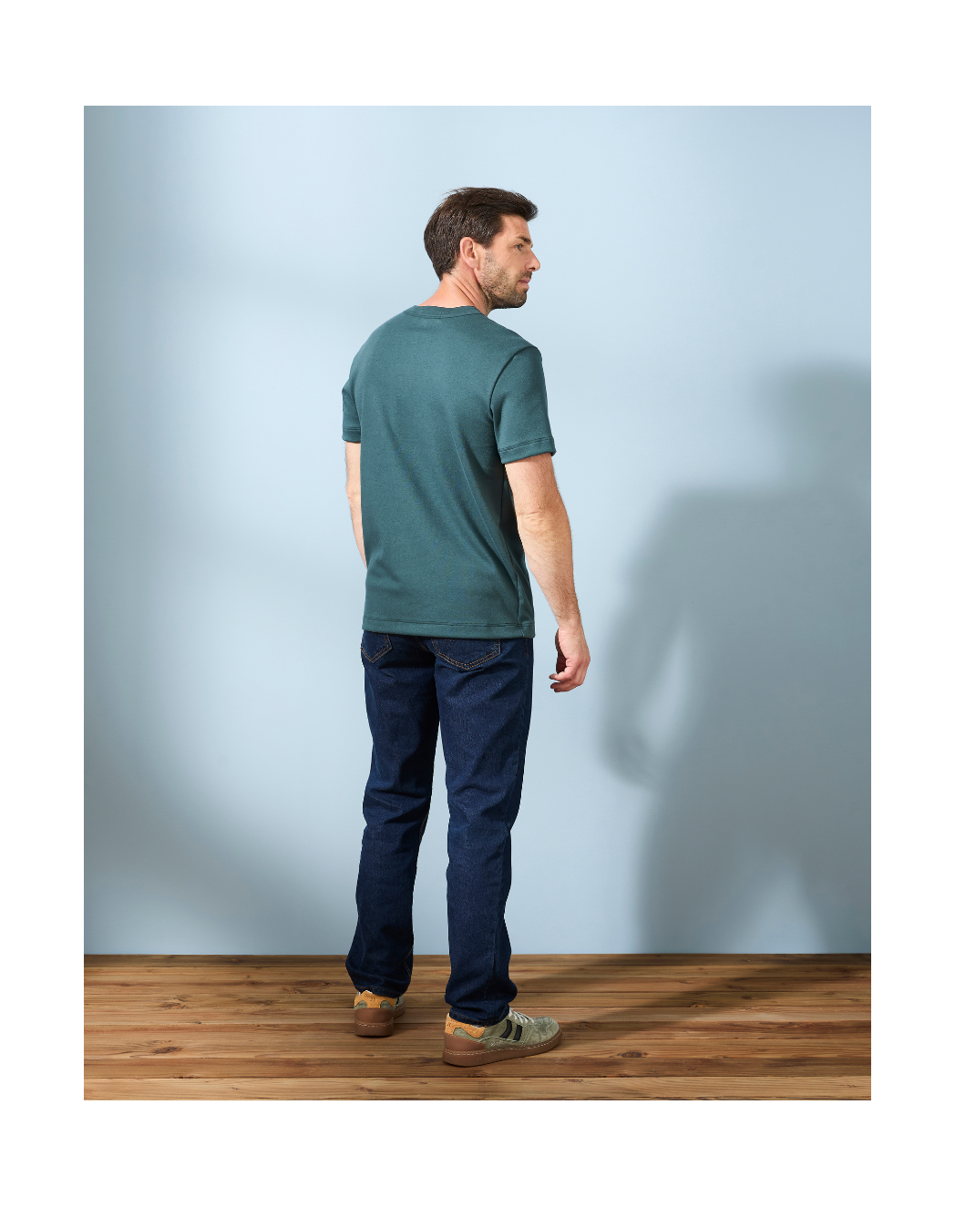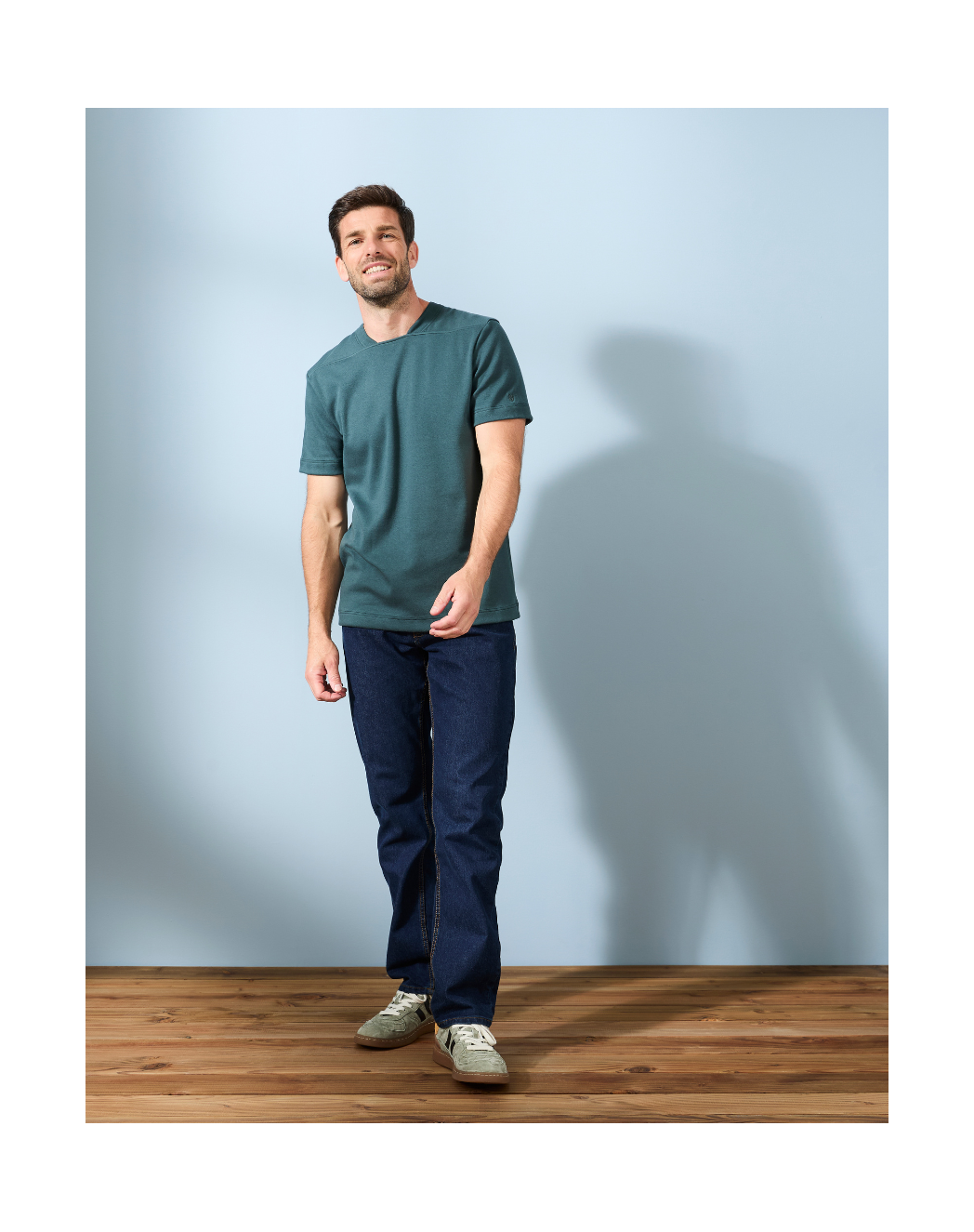 Notre intention avec ce modèle ? Réinventer le t-shirt homme classique. Nous avons conservé la base du t-shirt Robin : une coupe droite et une maille interlock 100 % coton, dense et premium, pour un tombé et un toucher impeccables. Mais nous avons laissé de côté le col rond traditionnel, au profit d’une encolure retravaillé en côte 1x1 et d’une découpe droite qui souligne la carrure et attire immédiatement le regard. Résultat : une pièce qui se démarque instantanément, pensée pour ne laisser personne indifférent.
