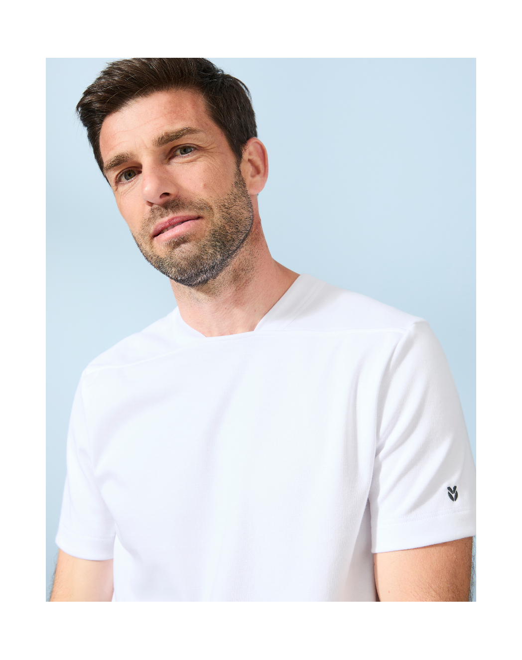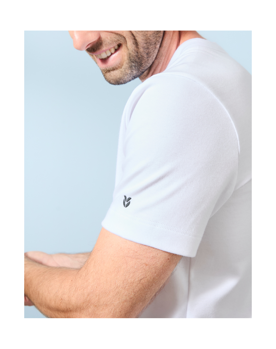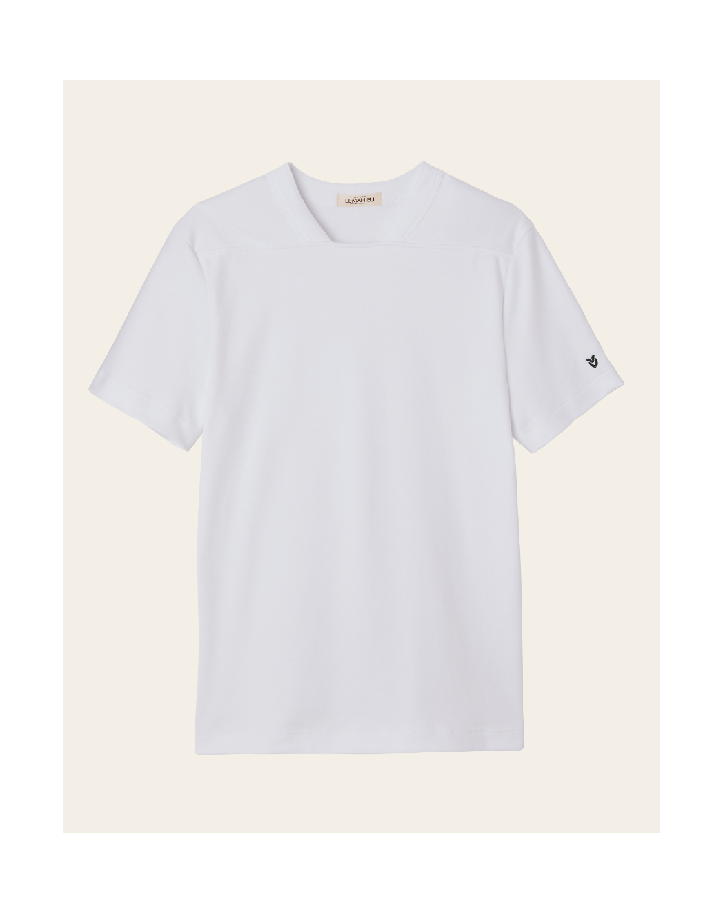 Notre intention avec ce modèle ? Réinventer le t-shirt homme classique. Nous avons conservé la base du t-shirt Robin : une coupe droite et une maille interlock 100 % coton, dense et premium, pour un tombé et un toucher impeccables. Mais nous avons laissé de côté le col rond traditionnel, au profit d’une encolure retravaillé en côte 1x1 et d’une découpe droite qui souligne la carrure et attire immédiatement le regard. Résultat : une pièce qui se démarque instantanément, pensée pour ne laisser personne indifférent.