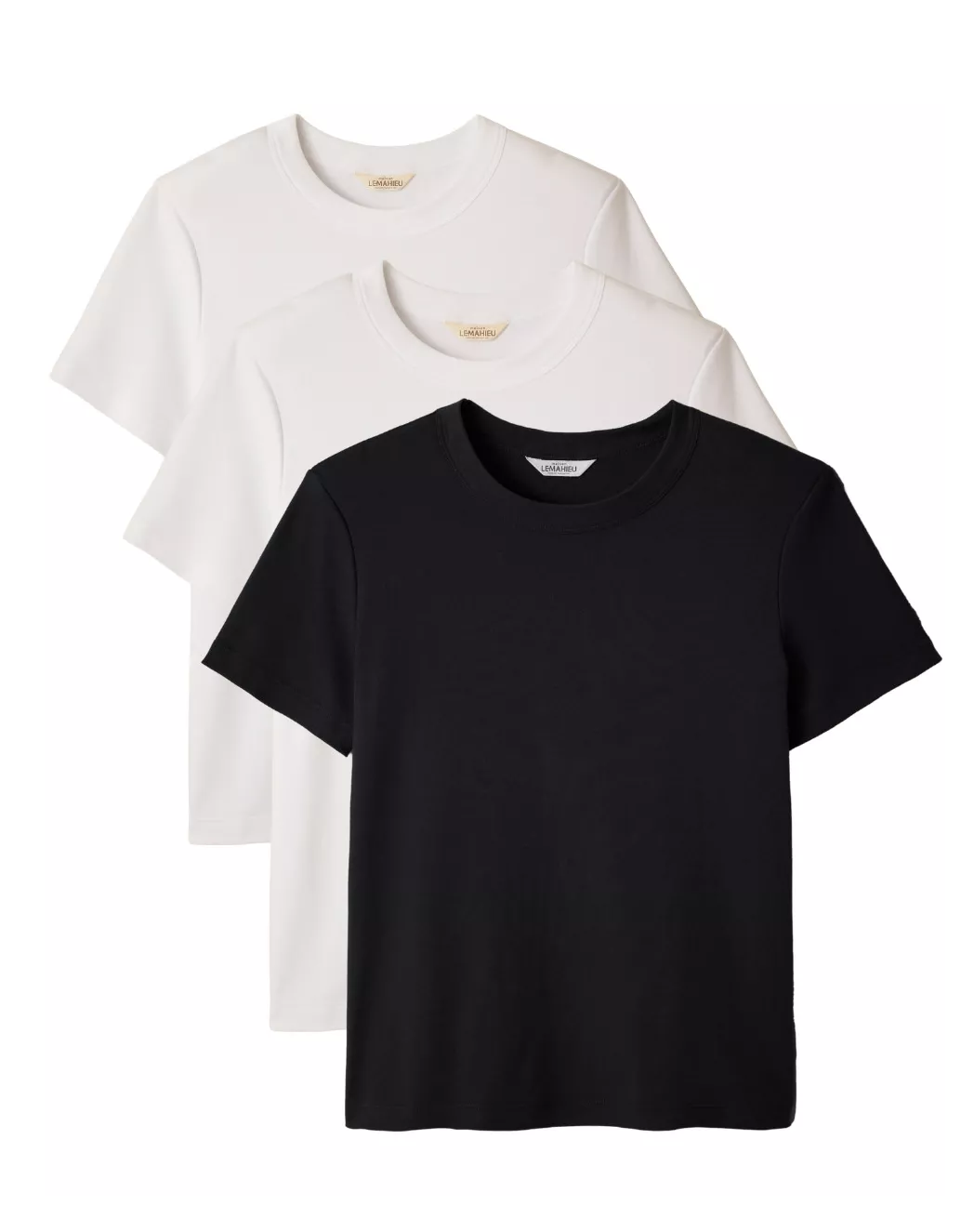 3x T-shirts épais en Coton Bio - Noir - Blanc