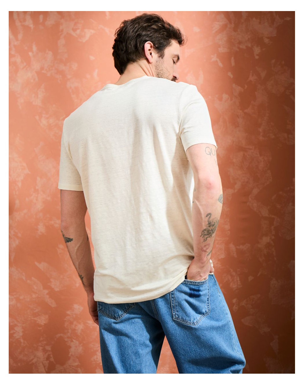 Respirant, durable et empreint d'élégance, ce t-shirt en lin se distingue par son grammage généreux, assurant une opacité parfaite et une silhouette impeccable. Avec son drapé naturel et raffiné, il incarne toute la noblesse du lin. Idéal pour vous accompagner saison après saison, il allie allure intemporelle et confort incomparable. Fabriqué à partir d’une matière 100% naturelle, ce t-shirt est un véritable essentiel, agréable à porter et parfait pour sublimer vos tenues, quel que soit le moment de l'année.
