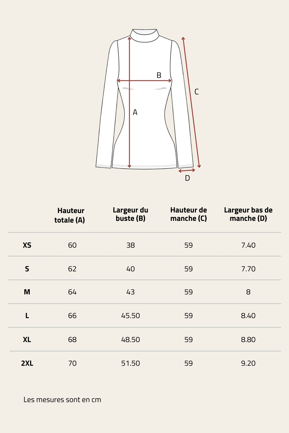| Type de manches | Manches longues |
