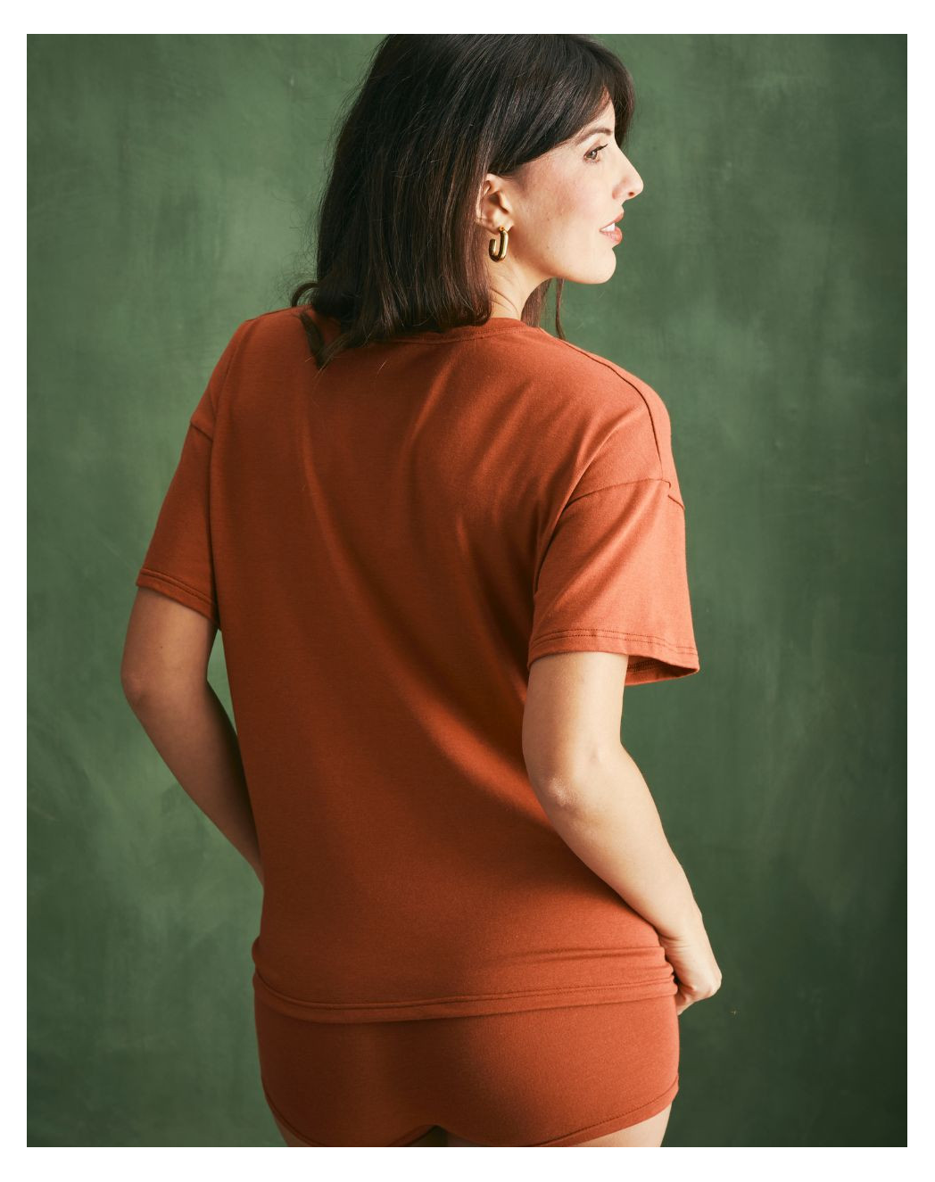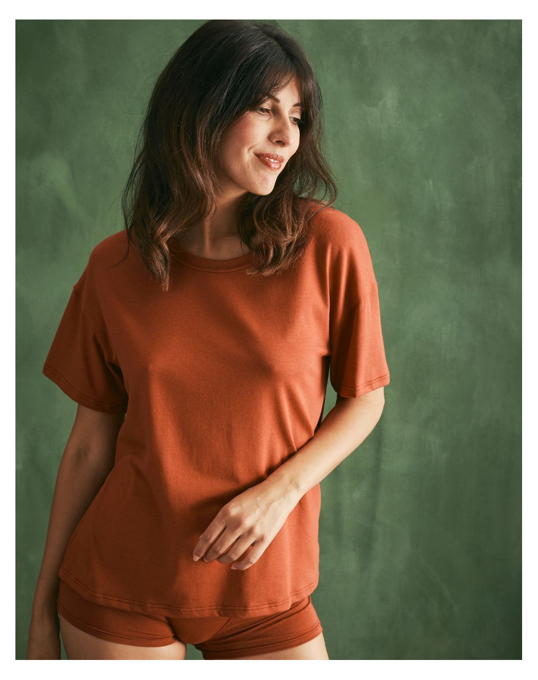 Un vrai bonheur à porter, ce top à la coupe large est super fluide et vous apporte un grand confort. Sa coupe ample offre une silhouette moderne, parfaite pour un look casual. Minimaliste, mais indispensable, ce t-shirt combine douceur et style pour vous séduire au quotidien. Que ce soit à la maison ou en journée, ce vêtement vous offre une dose de douceur inégalée.